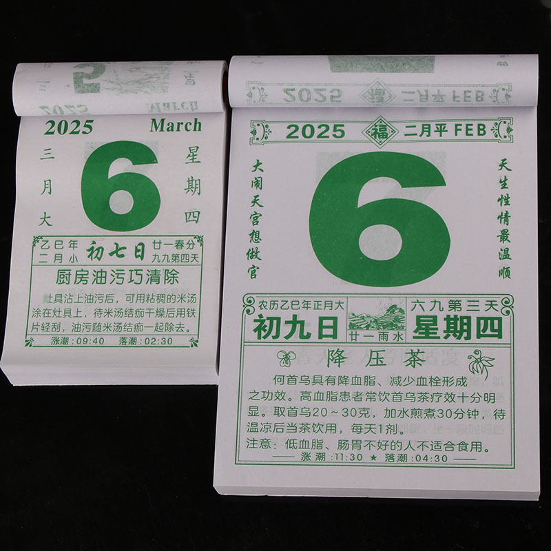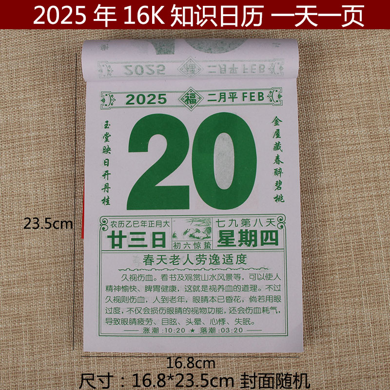 2025 년 뱀 지식 달력 1 페이지 백과 사전 생활 팁 건강 관리 손 눈물 홈 캘린더