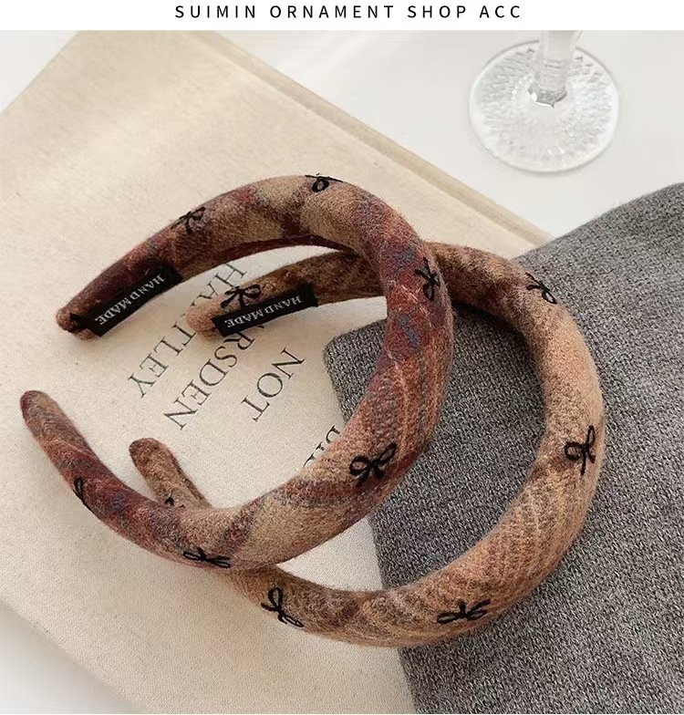 Grinds 봉제 헤드 밴드 여성 레트로 프렌치 스타일 헤어 클립 가을과 겨울 높은 두개골 탑 압력 헤어 넓은 챙이 미끄럼 방지 헤드 밴드스토어 가기