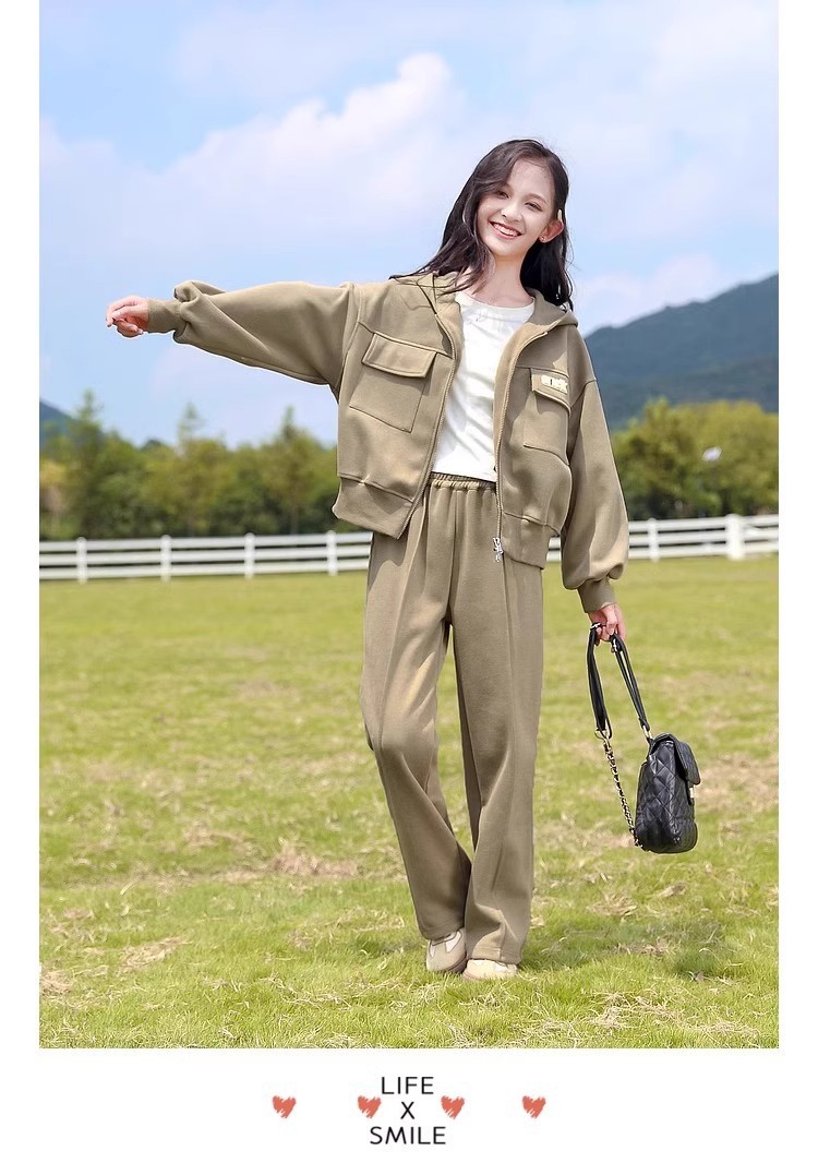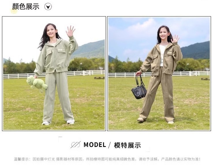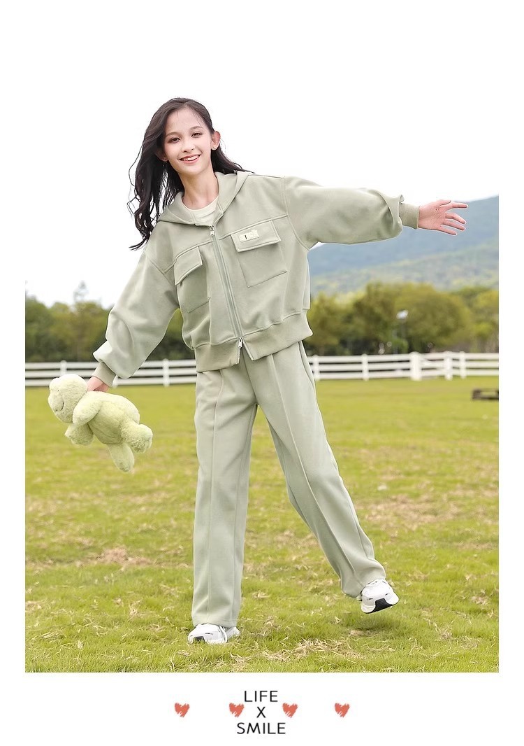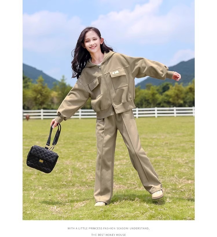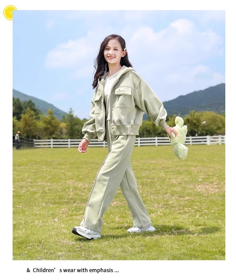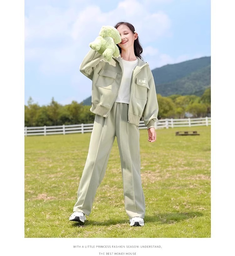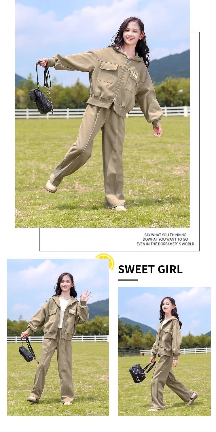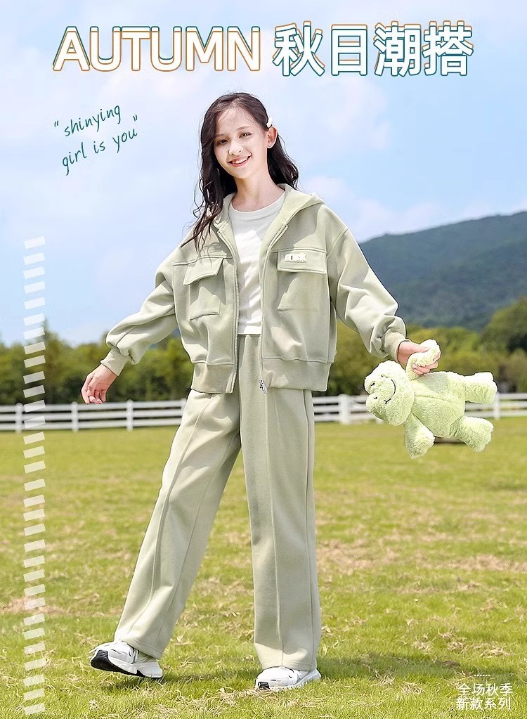 소녀의 봄 세트 2025 새로운 서양 스타일 패션 중대형 어린이를위한 긴 소매 재킷 스포츠웨어 인기 투피스 세트스토어 가기