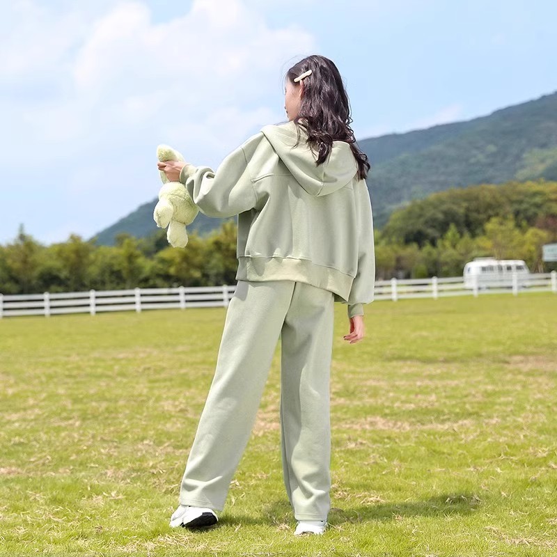 소녀의 봄 세트 2025 새로운 서양 스타일 패션 중대형 어린이를위한 긴 소매 재킷 스포츠웨어 인기 투피스 세트