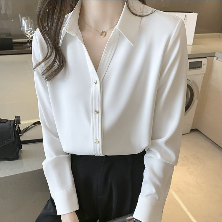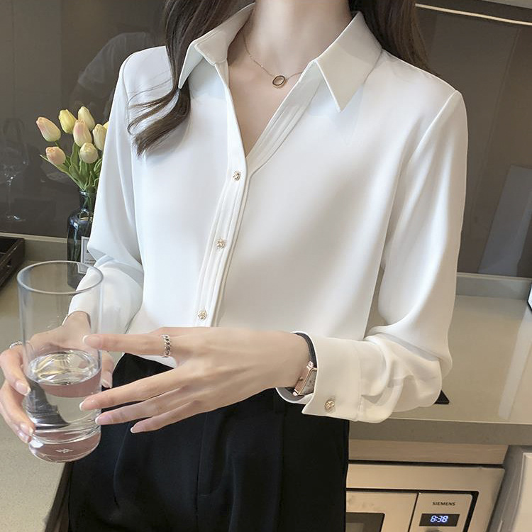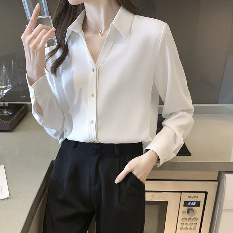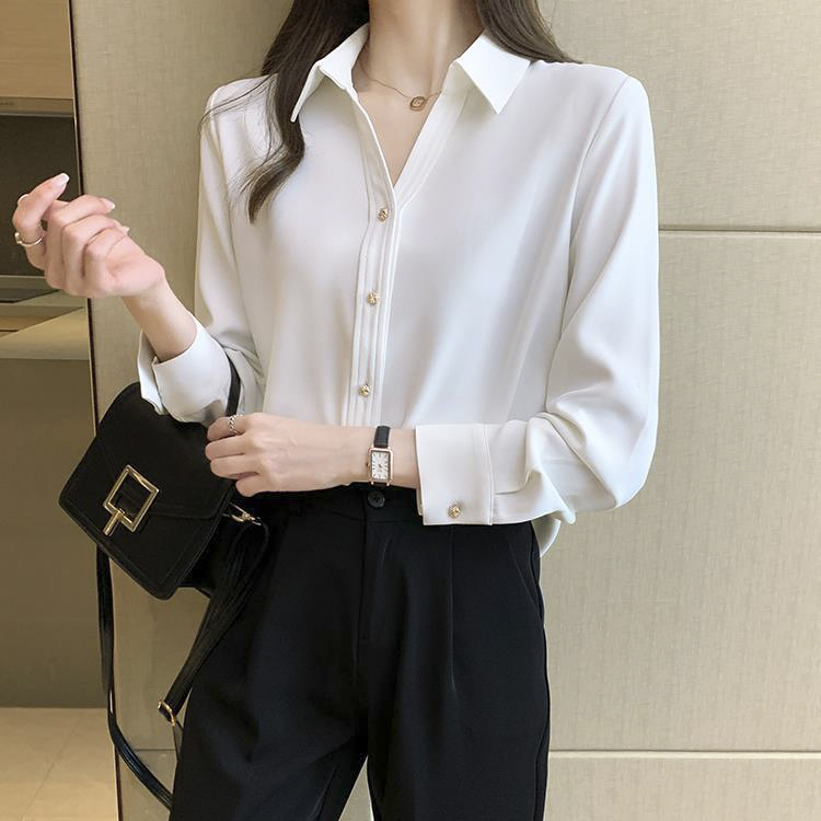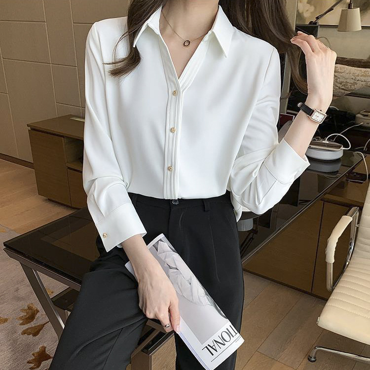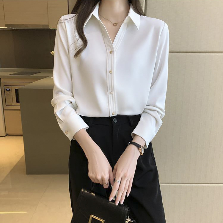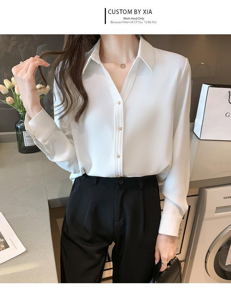 간단한 솔리드 컬러 캐주얼 긴팔 셔츠 여성용 얇은 경량 느슨한 슬림 핏 전문 세트 옷깃베이스 셔츠