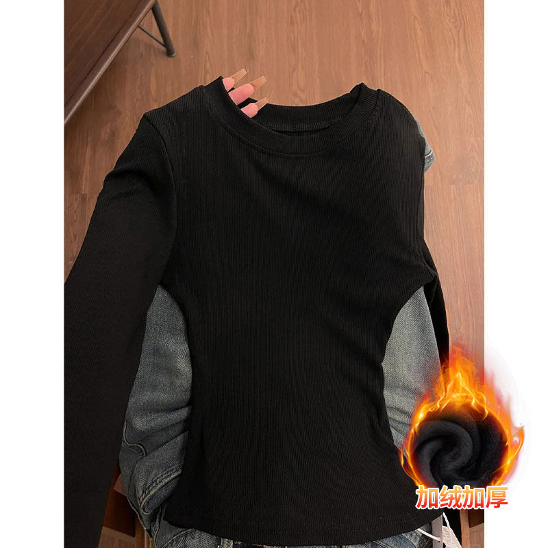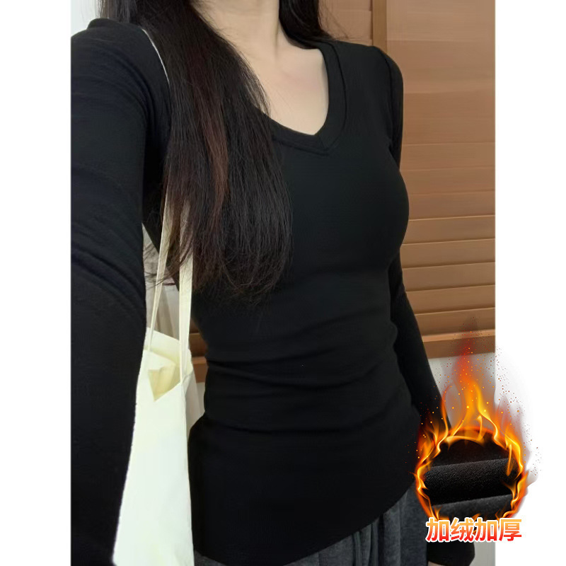 흰색 내베이스 셔츠 꽉 긴팔 티셔츠 여성용 가을과 겨울 기모 따뜻한 슬림핏 타이트 허리 스파이스 걸탑