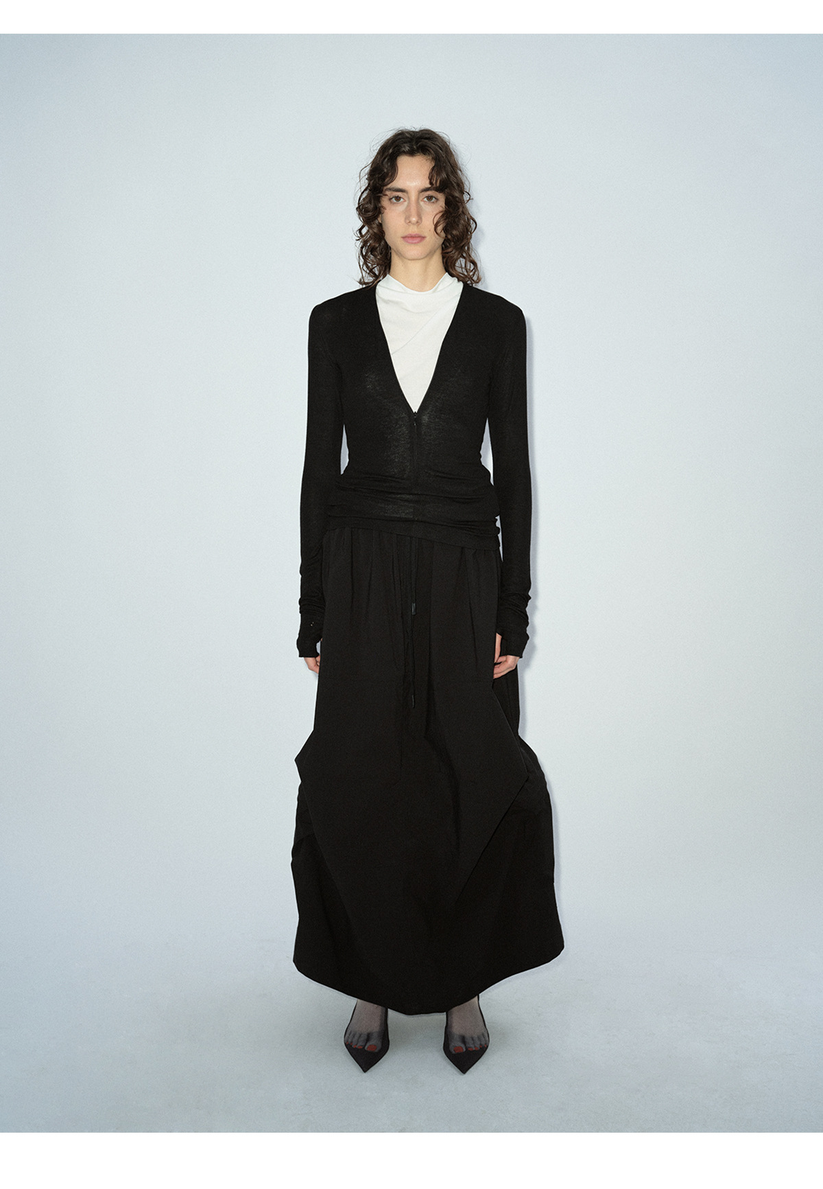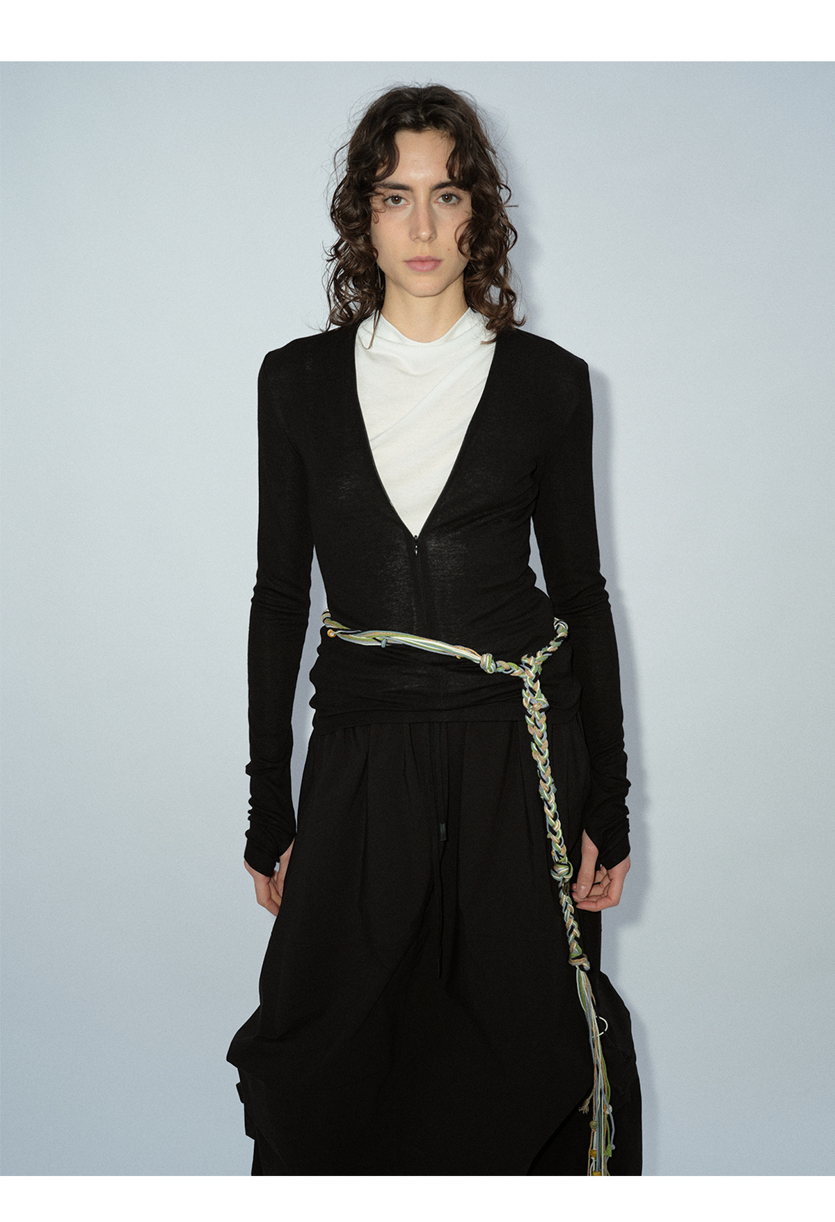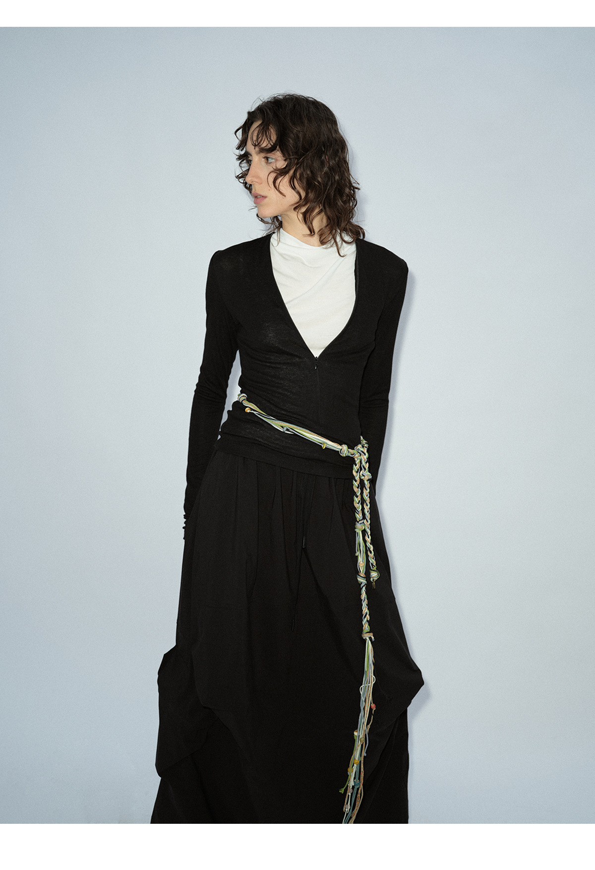 [시시] 신제품 텐셀 울 피부에 밀착되는 지퍼 없는 조절 가능한 딥 V 긴팔 단색 니트 여성용 V8082