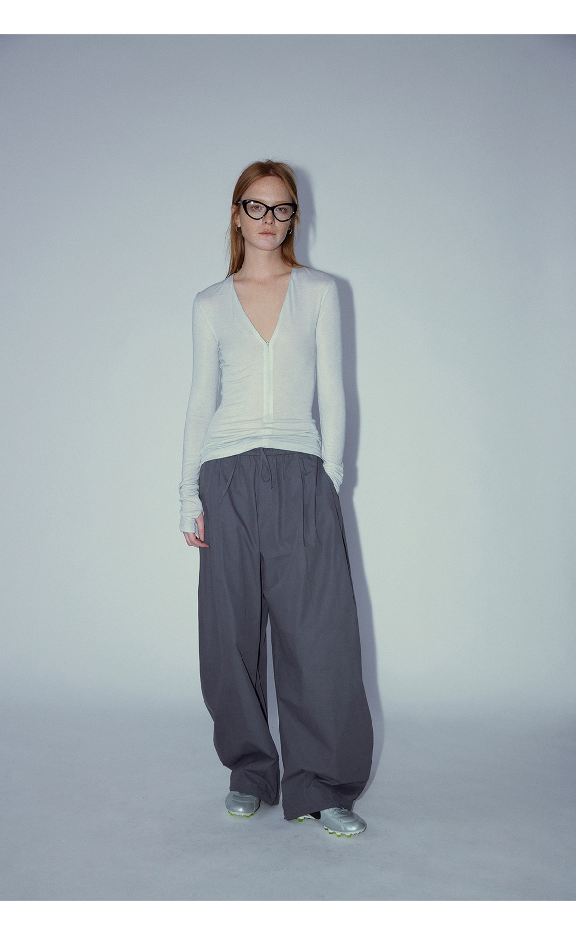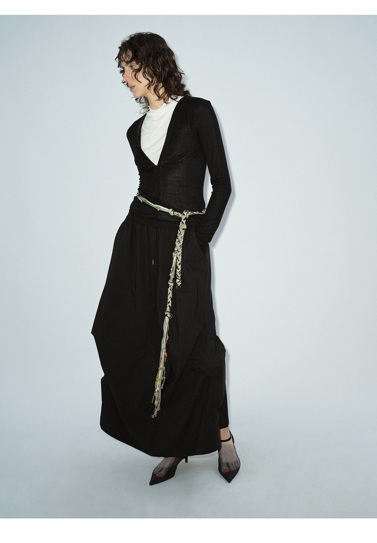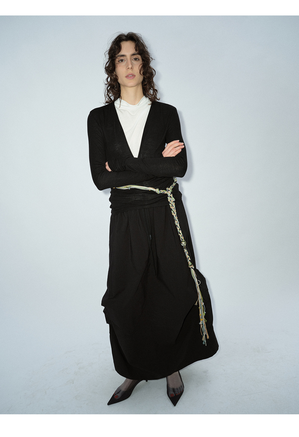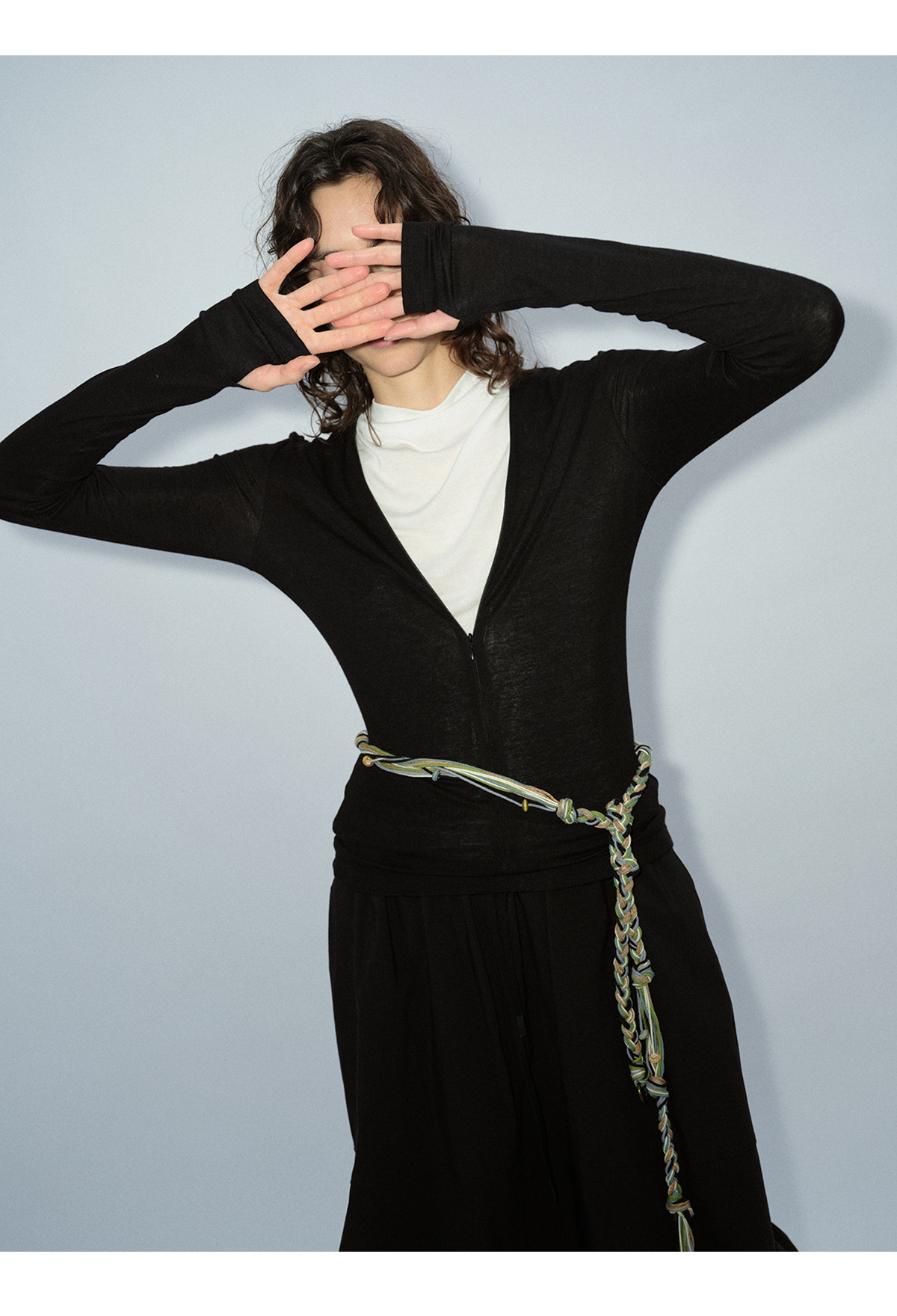 [시시] 신제품 텐셀 울 피부에 밀착되는 지퍼 없는 조절 가능한 딥 V 긴팔 단색 니트 여성용 V8082