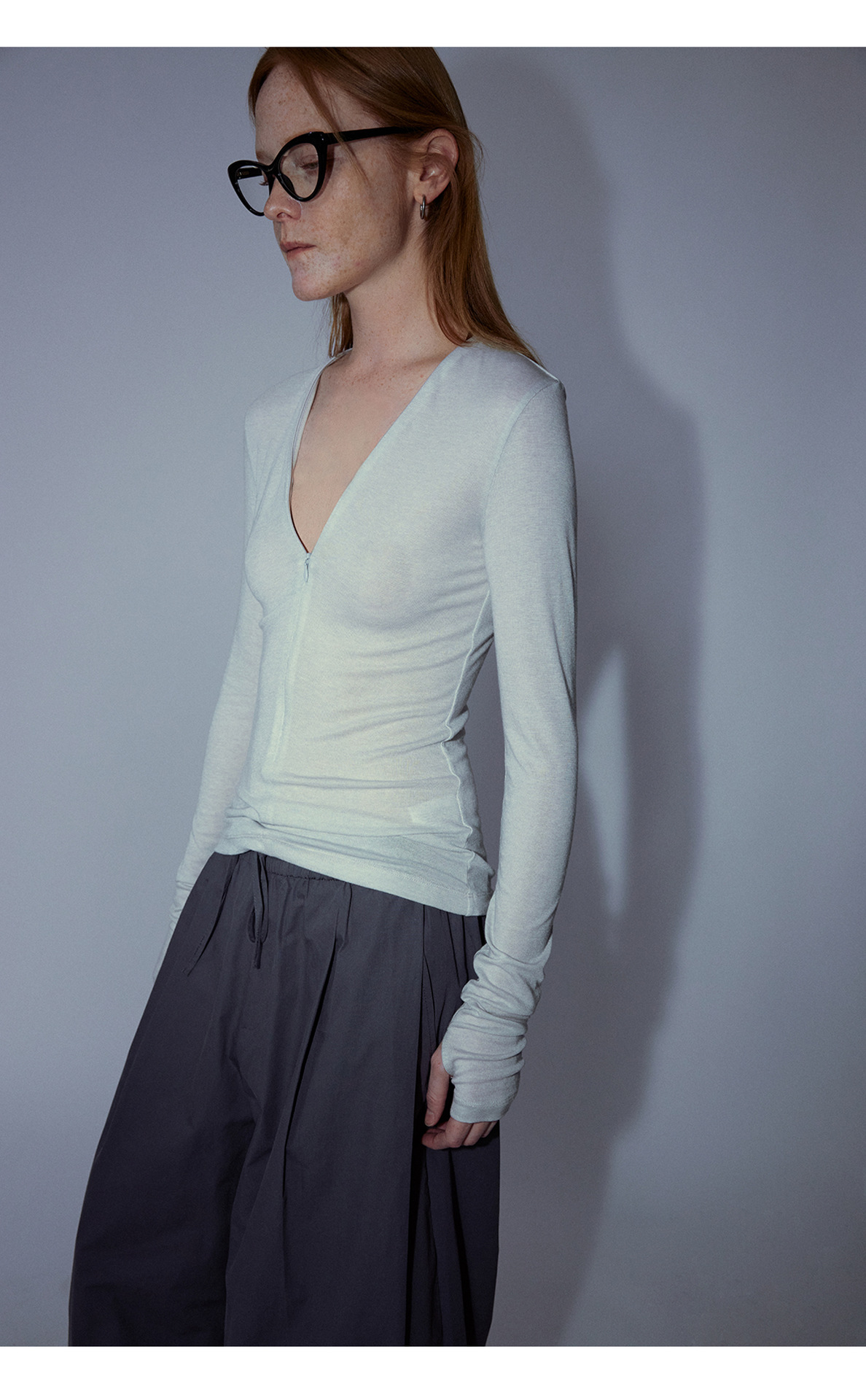 [시시] 신제품 텐셀 울 피부에 밀착되는 지퍼 없는 조절 가능한 딥 V 긴팔 단색 니트 여성용 V8082스토어 가기