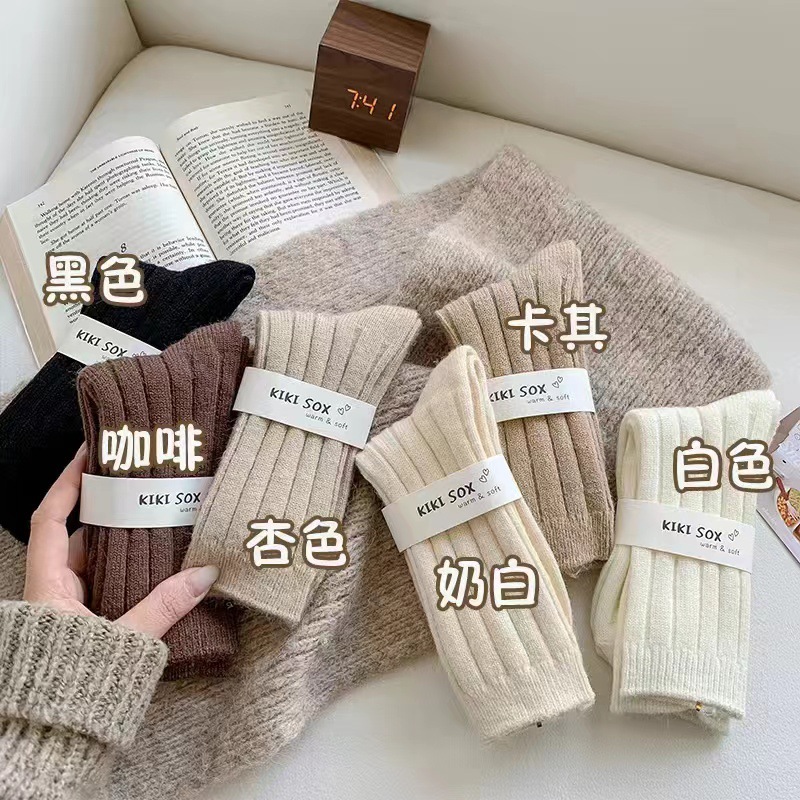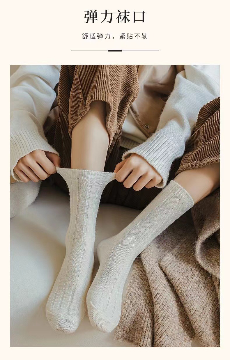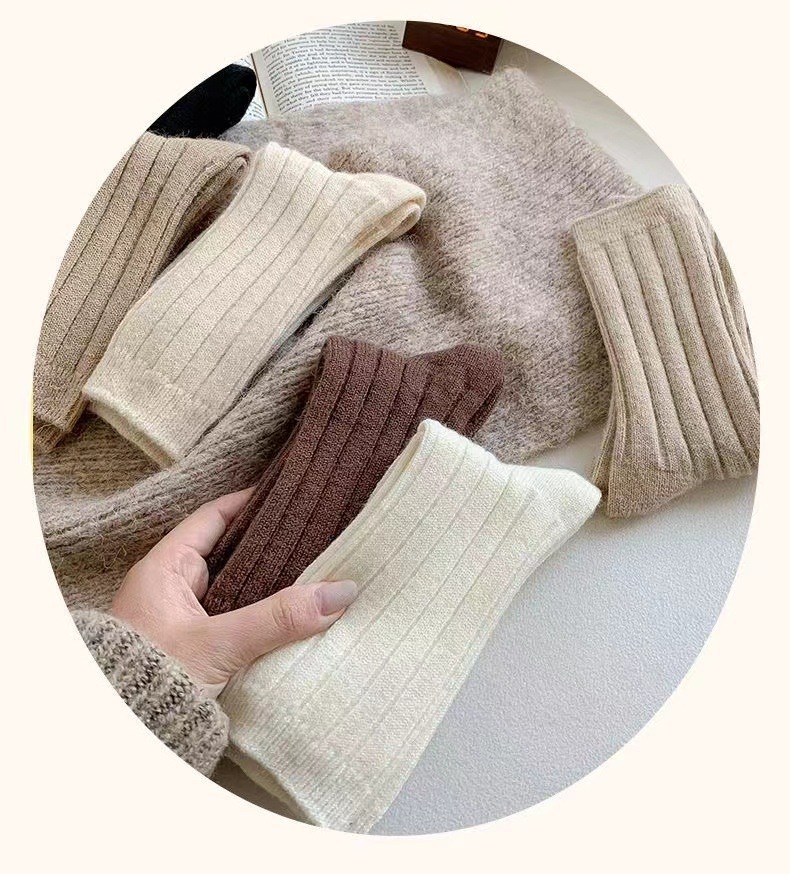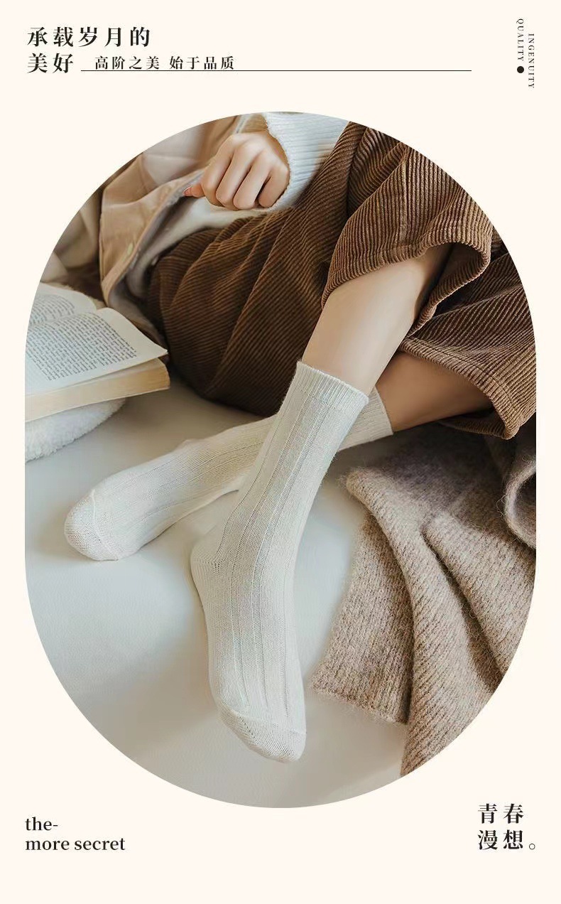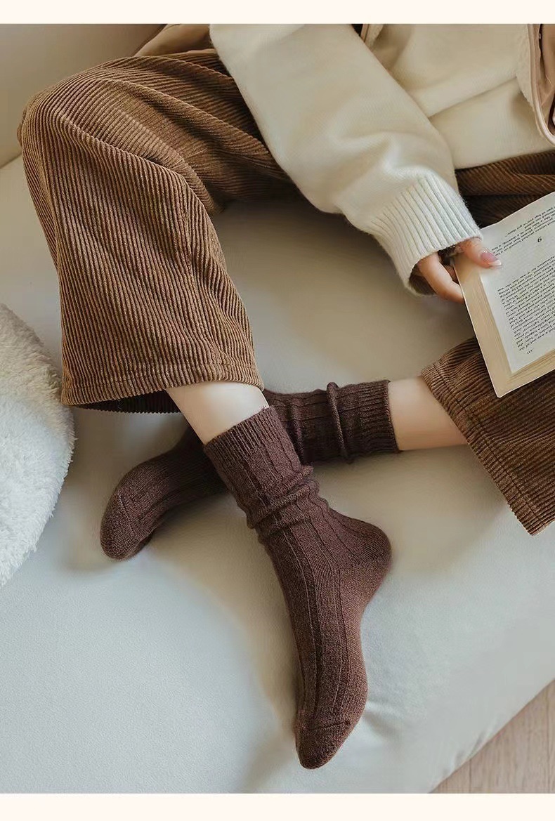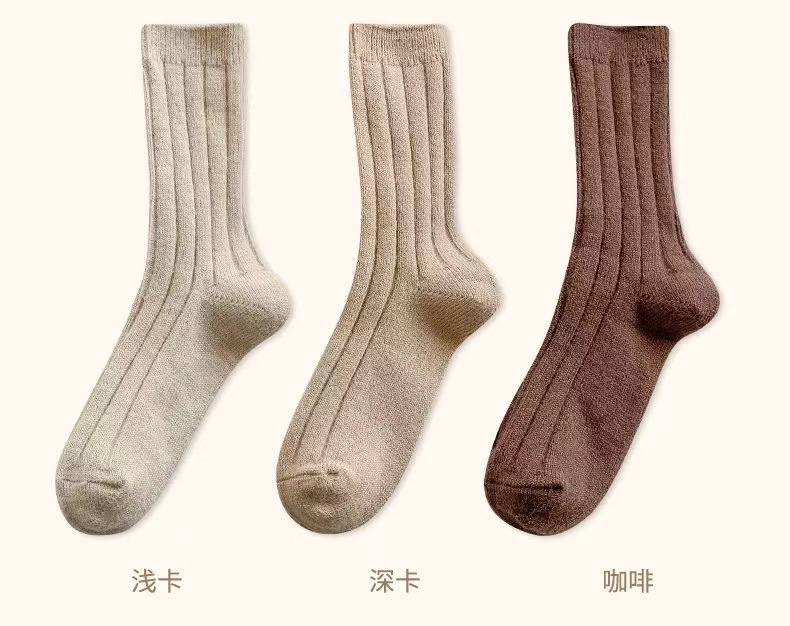 가을 겨울 두꺼운 바닥 양말 보온 양말 여성용 줄무늬 중간 길이 양말 겨울 다용도 메일라드 컬러 시리즈 중간 길이 양말