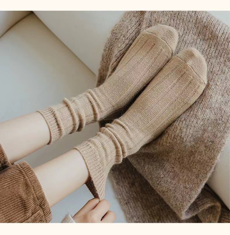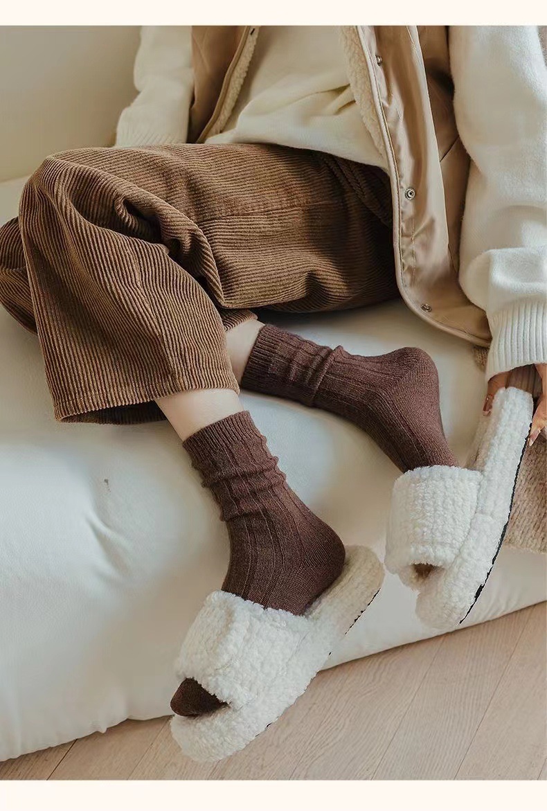 가을 겨울 두꺼운 바닥 양말 보온 양말 여성용 줄무늬 중간 길이 양말 겨울 다용도 메일라드 컬러 시리즈 중간 길이 양말스토어 가기