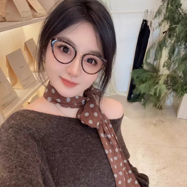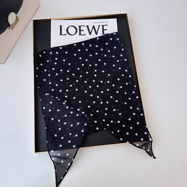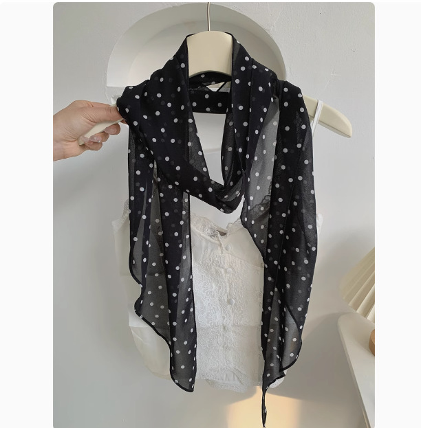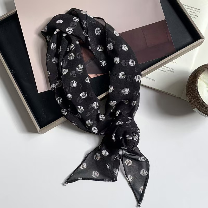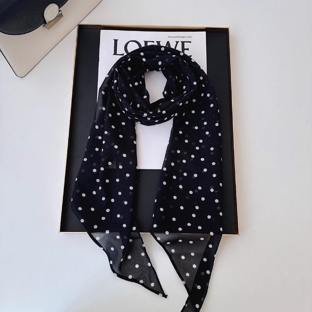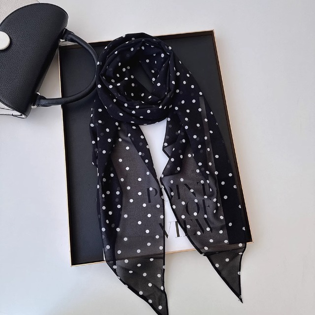 • 심플한 흑백 도트 실크 스카프 약 25*180CM