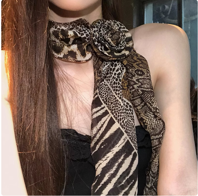 • 탈부착 가능한 꽃무늬가 있는 레트로 레오파드 프린트 스카프