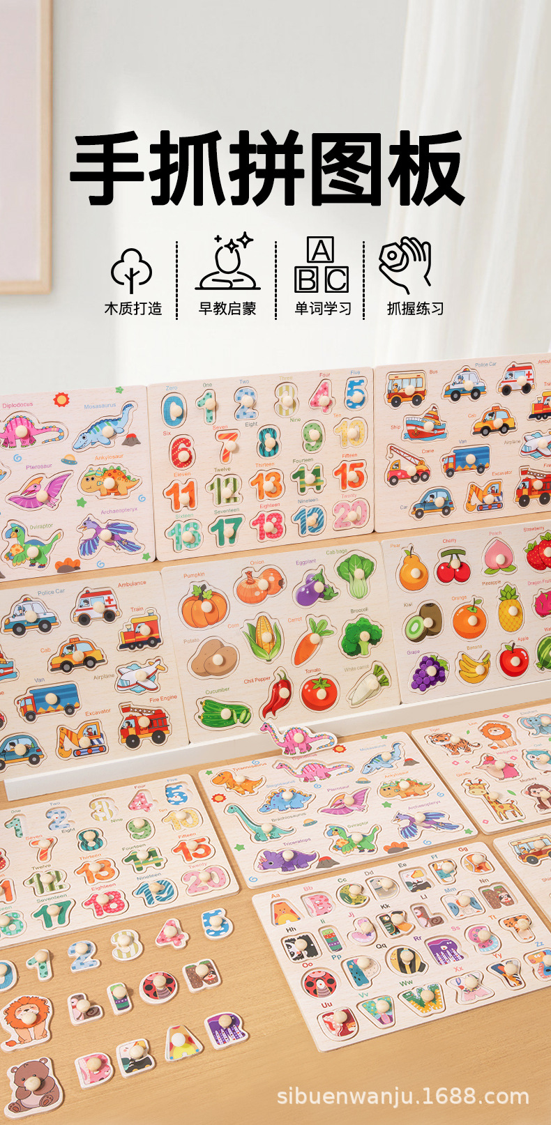 몬테소리 유아 교육 장난감 편지 수 동물 손 스크래치 보드 나무 어린이 아기 퍼즐 1-2-3 세스토어 가기