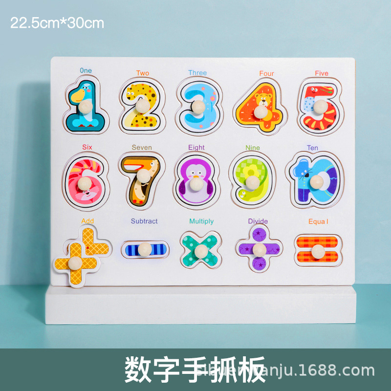 몬테소리 유아 교육 장난감 편지 수 동물 손 스크래치 보드 나무 어린이 아기 퍼즐 1-2-3 세