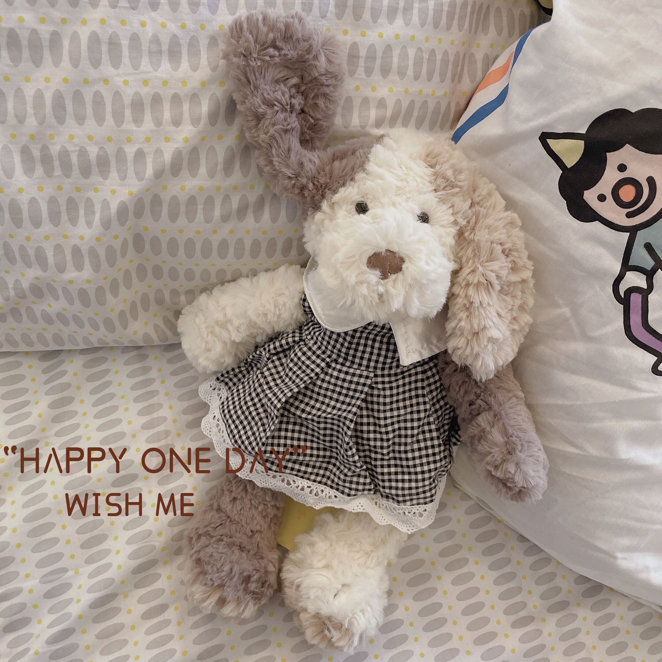 • 크림 강아지 + 노란 별 거즈 스커트
