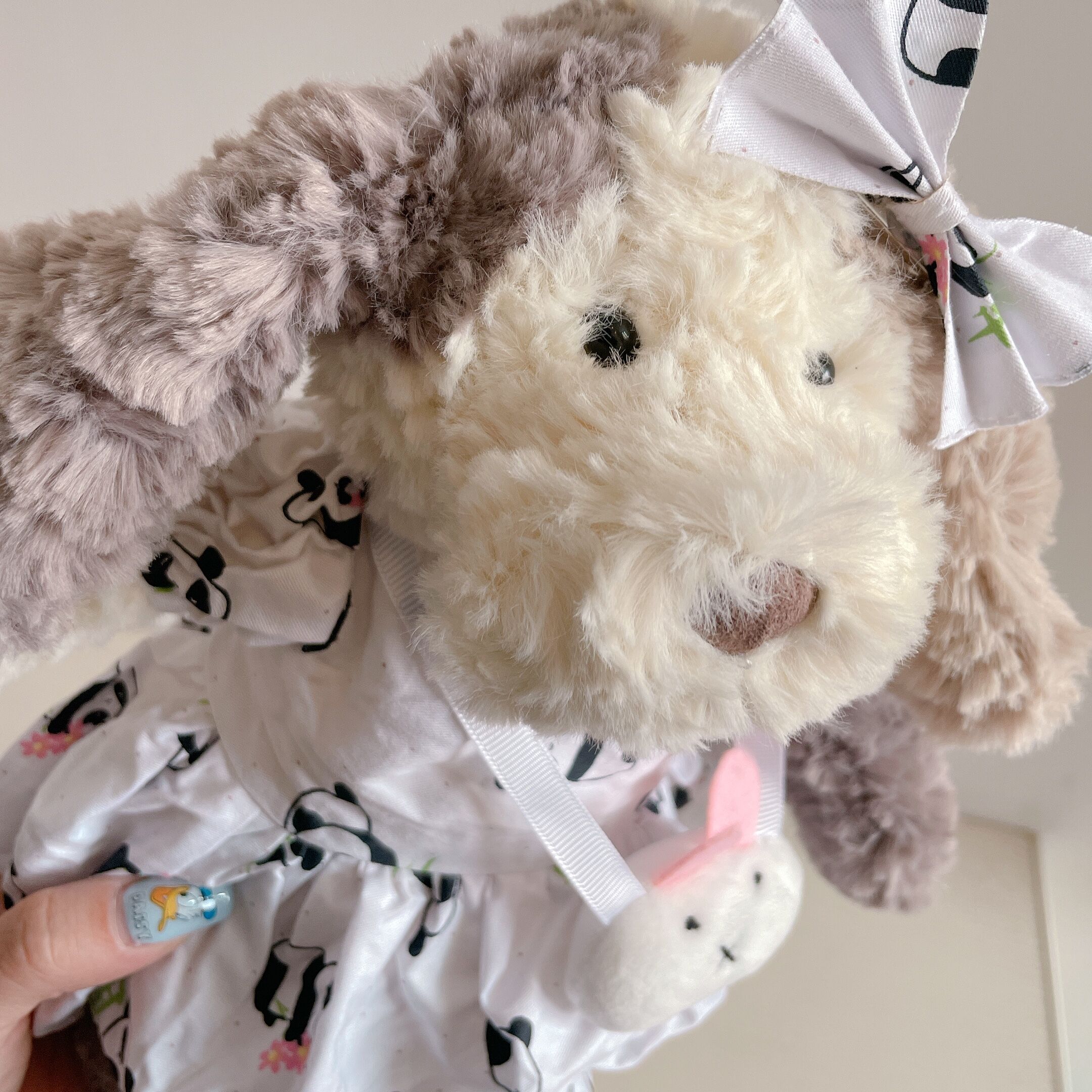 • 크림 강아지 + 팬더 드레스 + 토끼 가방