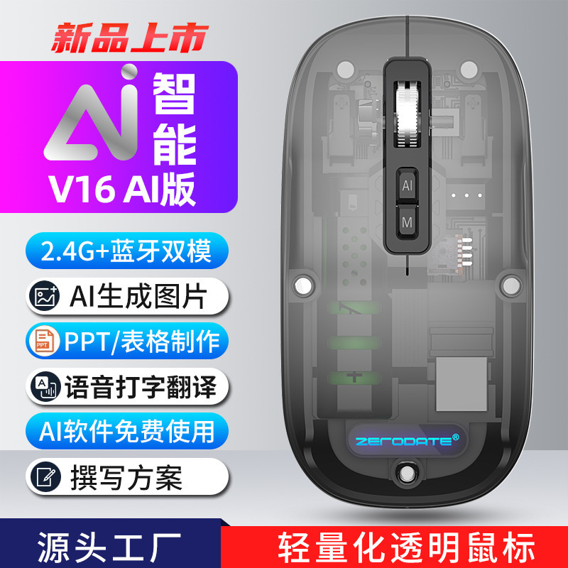 AI 스마트 마우스 투명 무선 마우스 V16 음성 타이핑 번역 생성 멀티 AI 대형 모델 딥 탐색스토어 가기