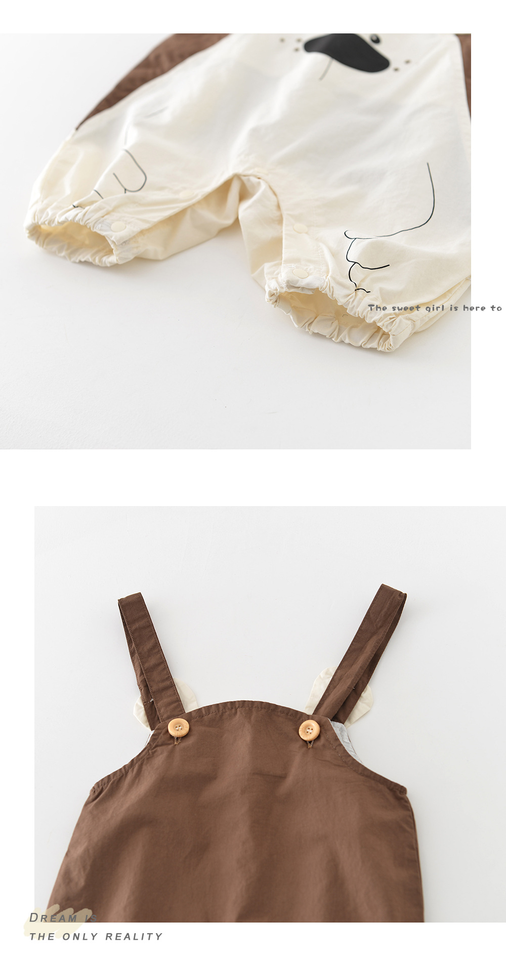 2025春季韩版宝宝卡通刺绣背带裤 男女童小狗公仔大口袋裤子51039