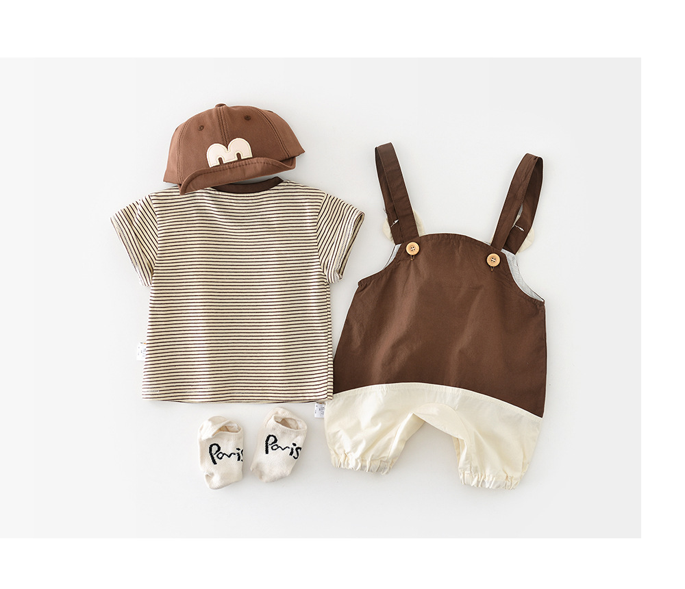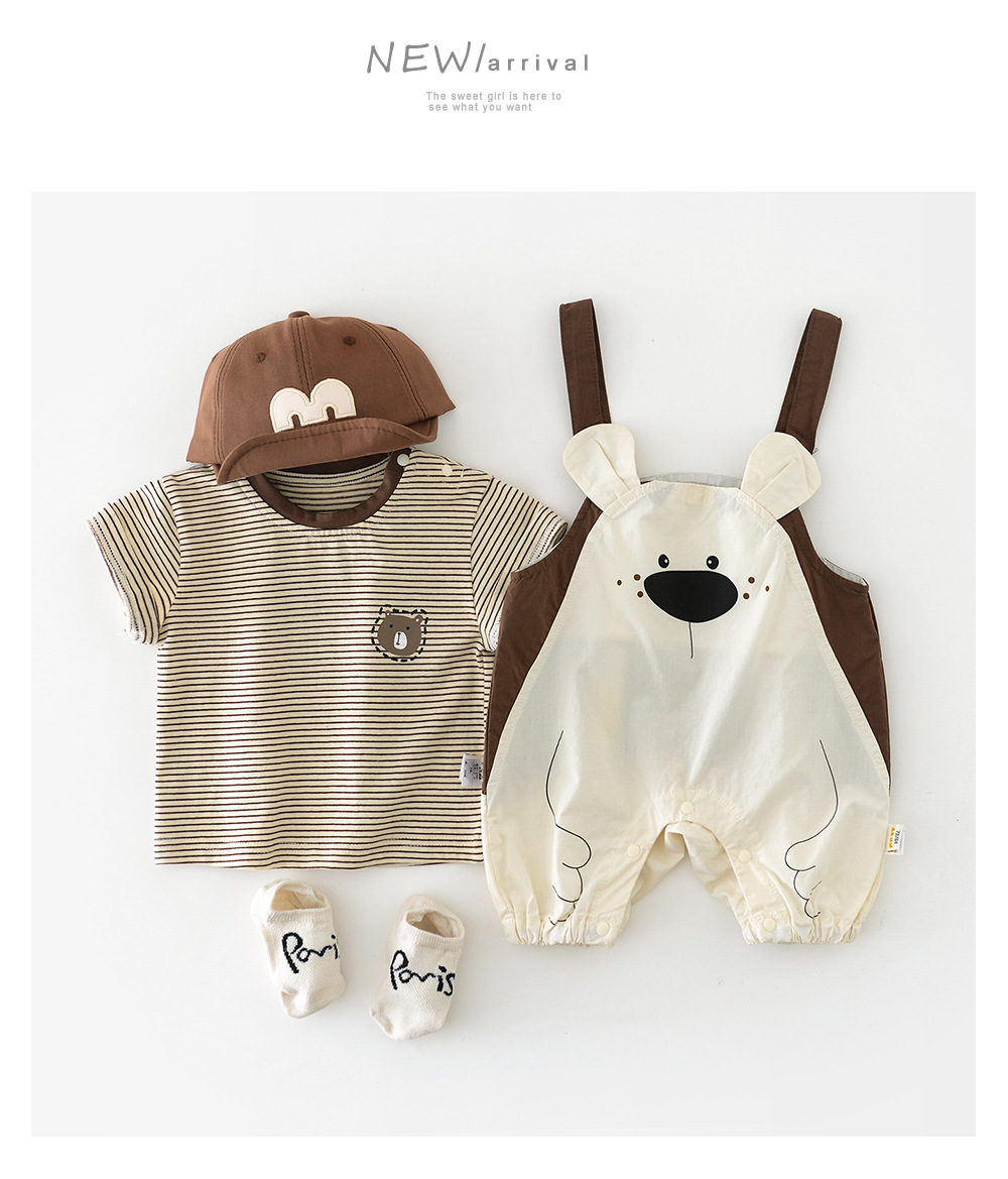 2025秋季新款儿童卡通连身衣 新生儿条纹脱卸领长袖爬服53566