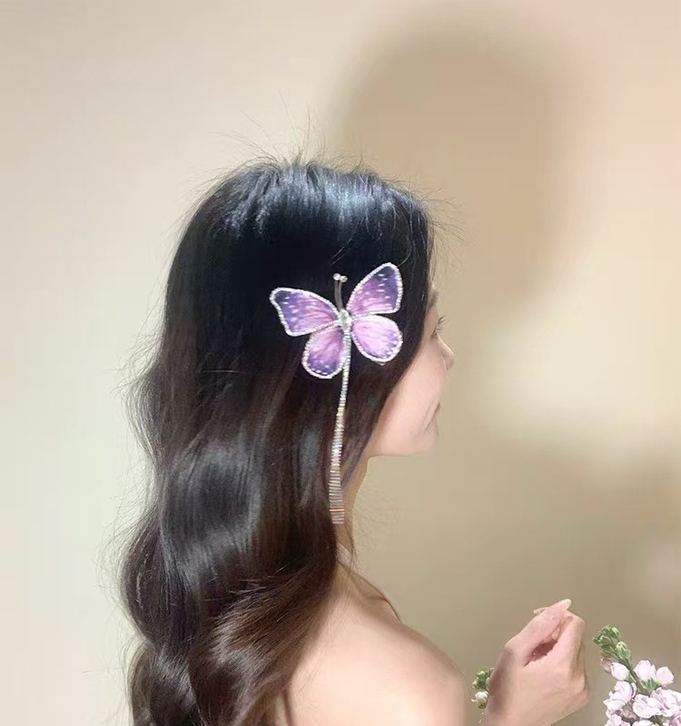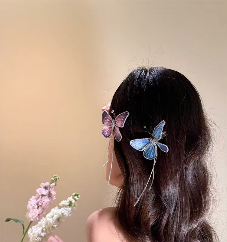 봄 2025 새로운 높은 그라디언트 나비 슈퍼 요정 머리핀 올 매치 모조 다이아몬드 사진 헤어 액세서리 기질 액세서리스토어 가기