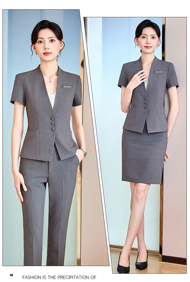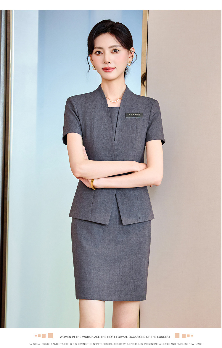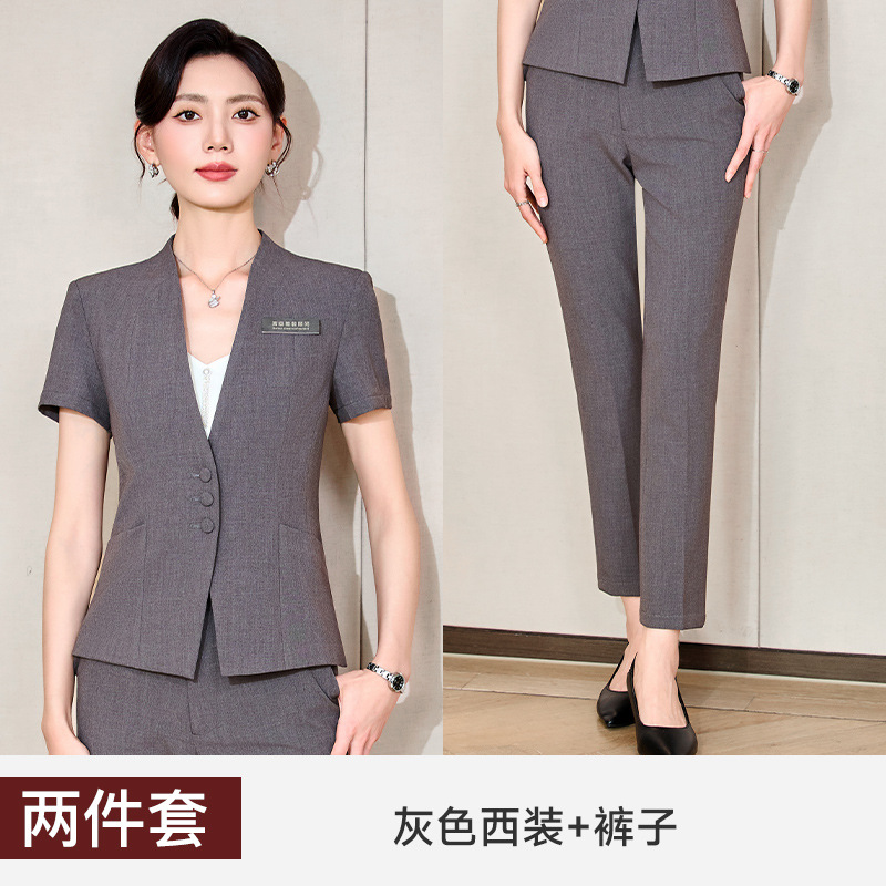 하이 엔드 비즈니스웨어 여름 반팔 세트 여성용 슬림 슬리밍 작업복 호텔 프런트 데스크 쥬얼리 스토어 판매 작업복