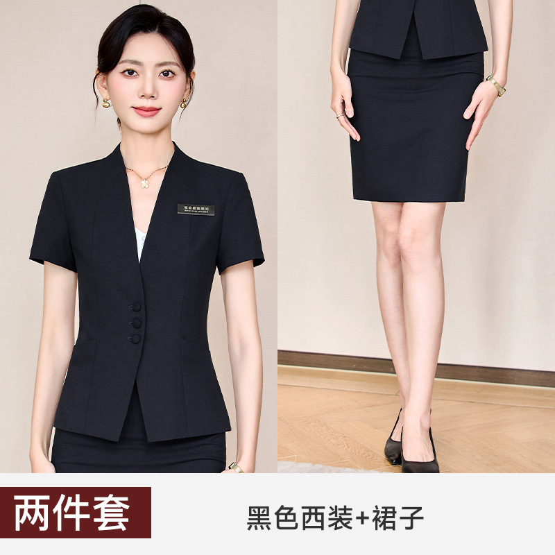 하이 엔드 비즈니스웨어 여름 반팔 세트 여성용 슬림 슬리밍 작업복 호텔 프런트 데스크 쥬얼리 스토어 판매 작업복스토어 가기