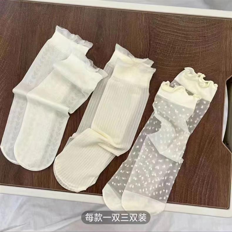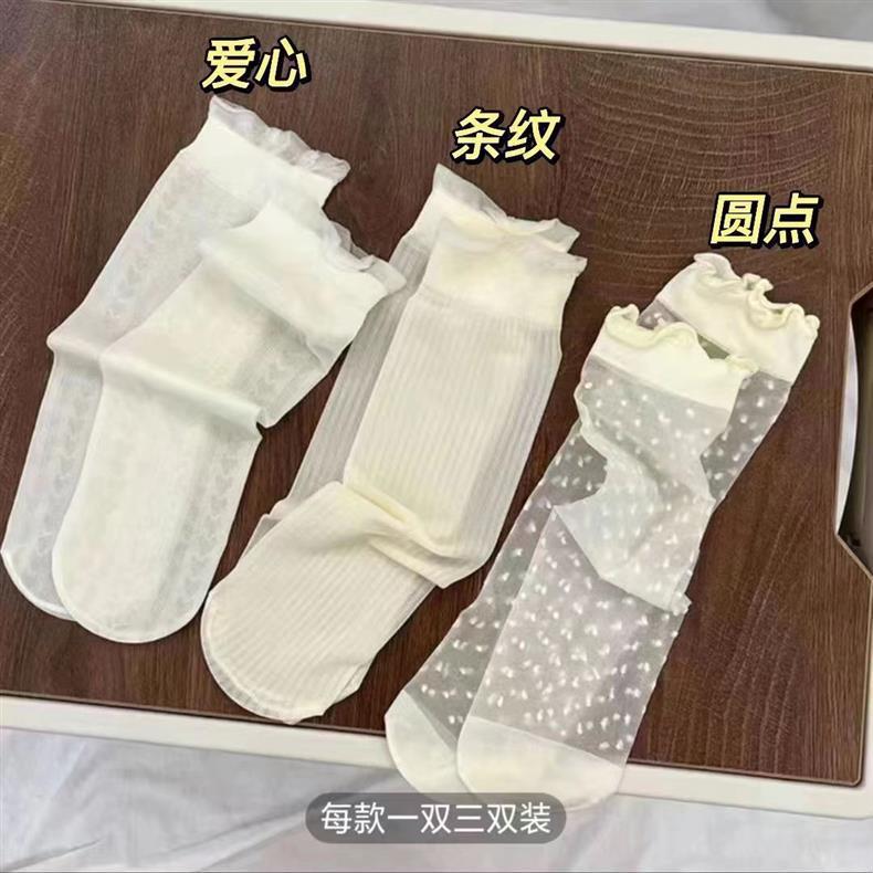 2025 울트라 얇은 여름 통기성 아이스 실크 레이스 양말 로리타 공주 요정 달콤한 더미 양말 작은 가죽 신발스토어 가기