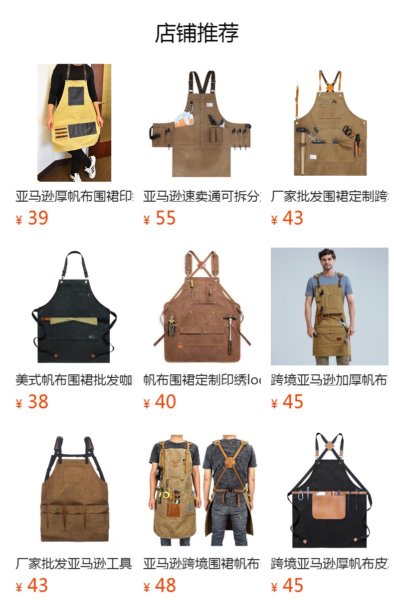 공장 도매 작업복 앞치마 맞춤형 대외 무역 레스토랑 커피 숍 야외 작업복 앞치마 자수 로고스토어 가기