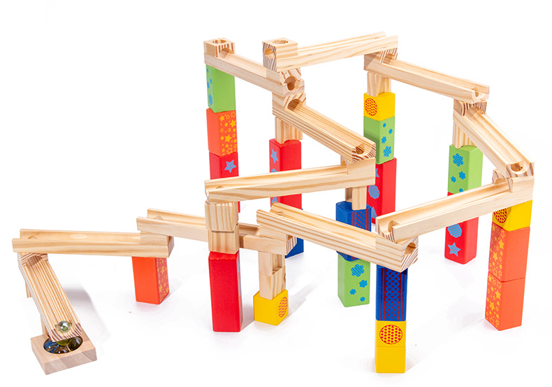 어린이 52 피스 트랙 대리석 나무 파이프 빌딩 블록 볼 조합 퍼즐 빌딩 블록 어린이 퍼즐 건설스토어 가기