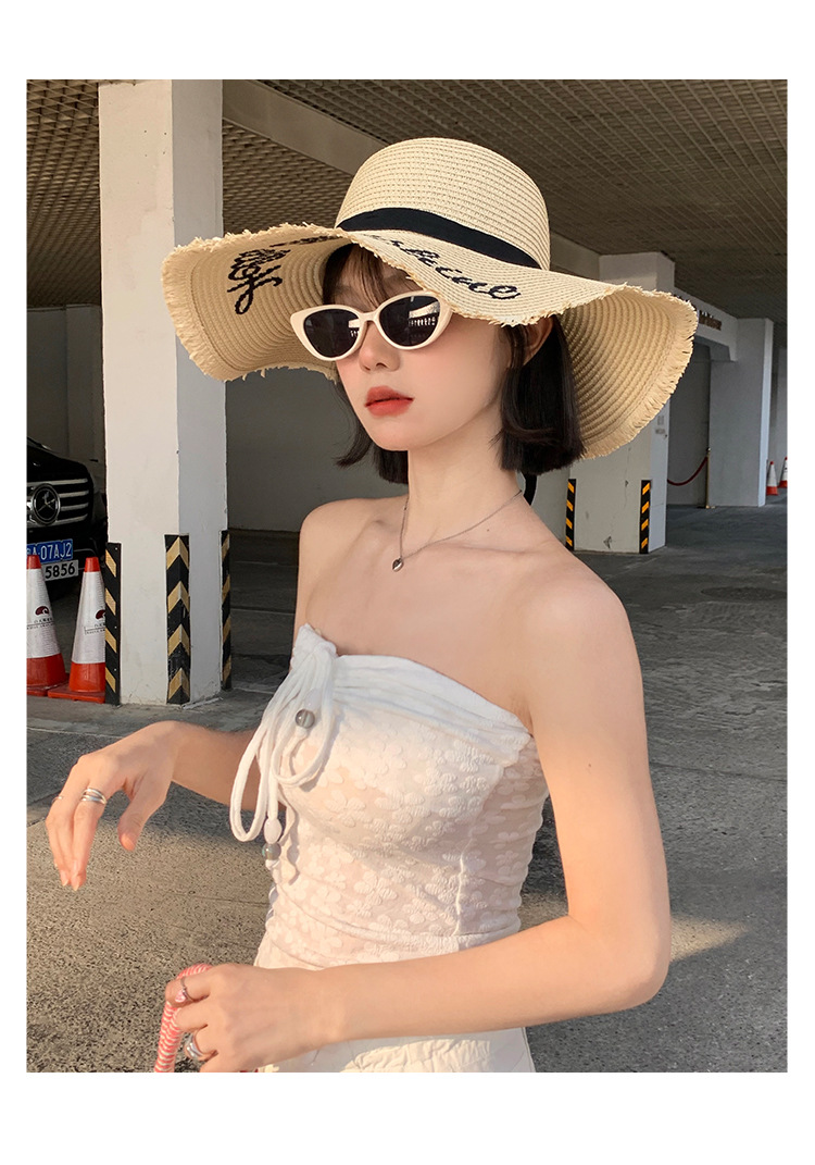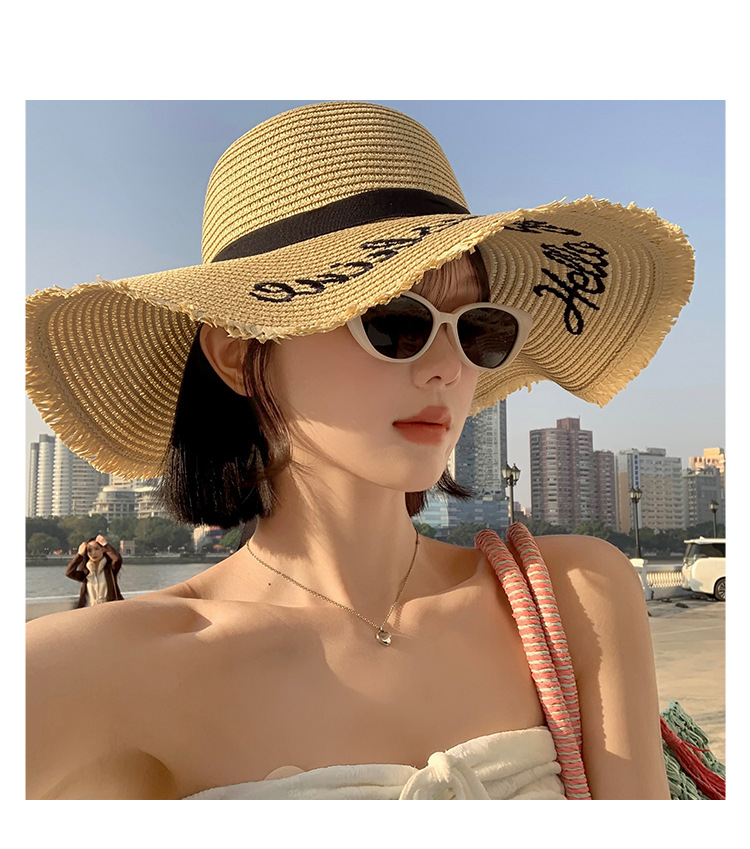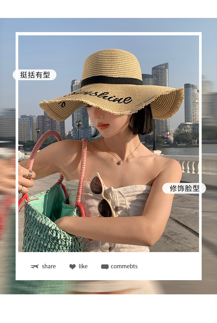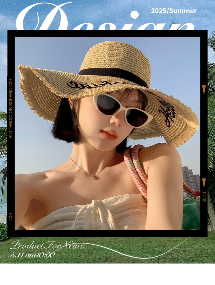 해변 휴일 큰 브림 태양 모자 여성의 2025 봄 새로운 차양 선 스크린 모자 프랑스 짠 밀짚 모자스토어 가기