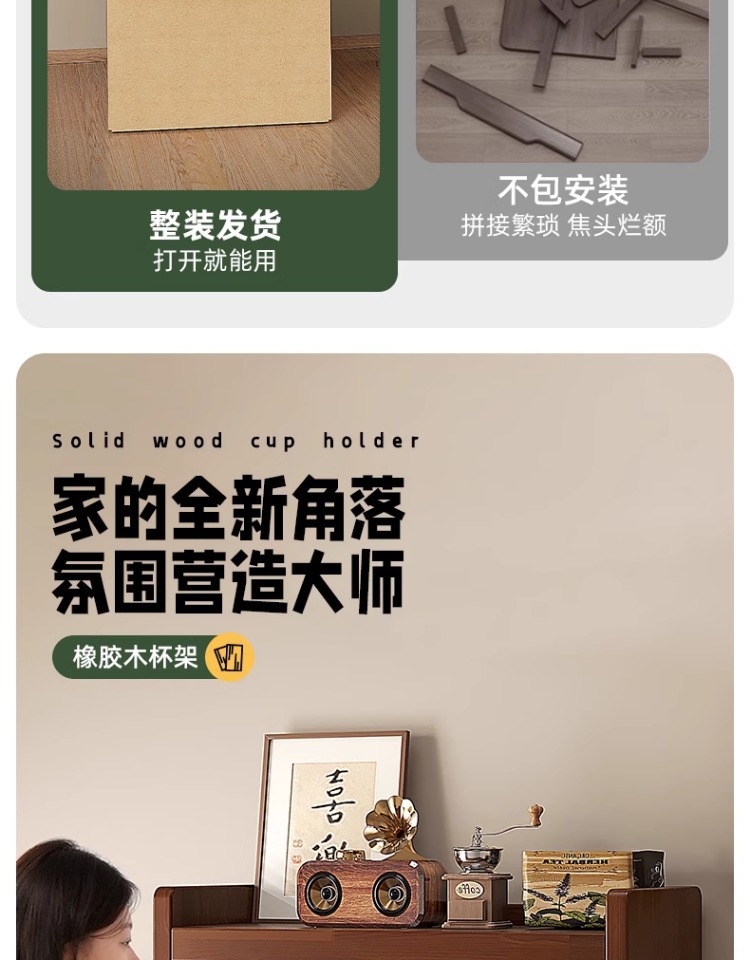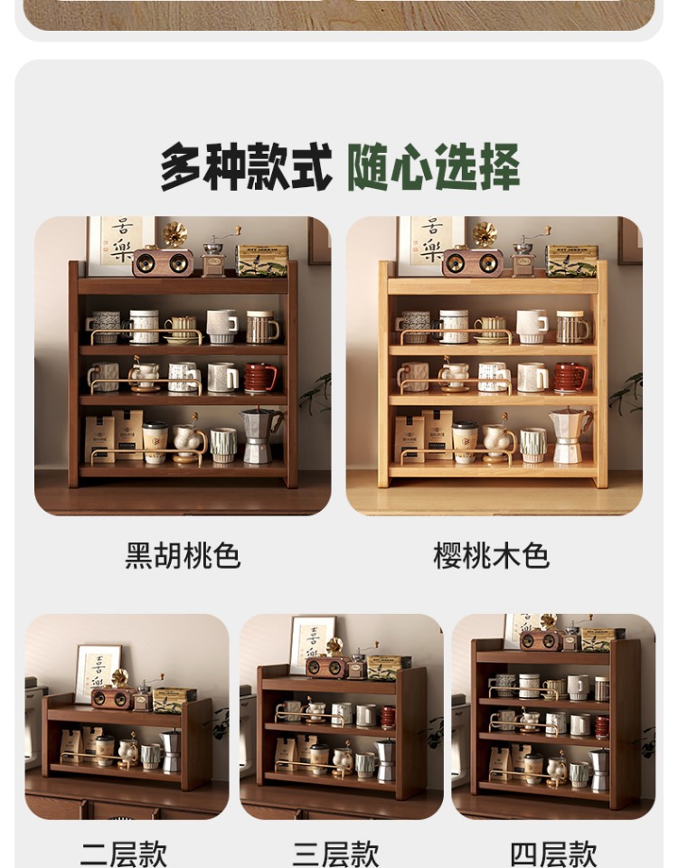 实木杯架台面黑胡桃杯子收纳置物架水杯架子茶杯咖啡杯桌面置物架