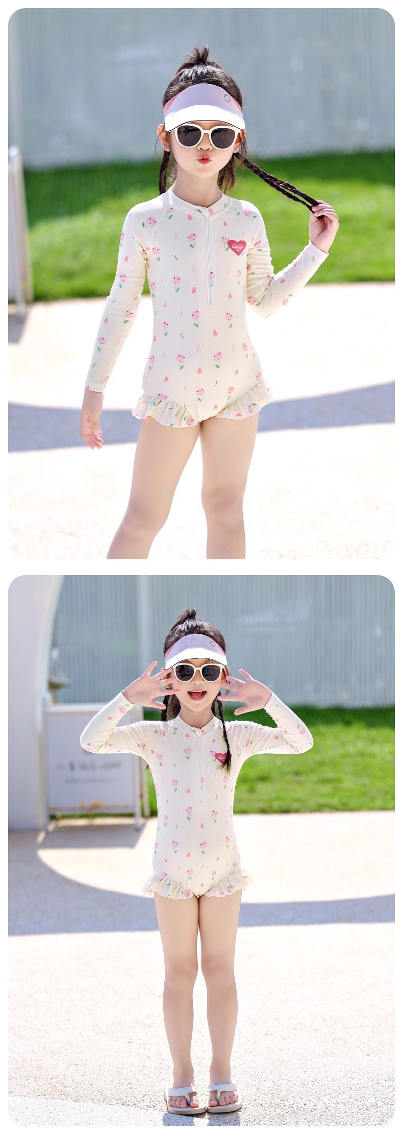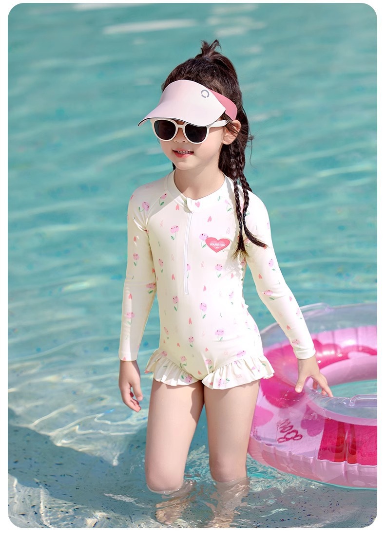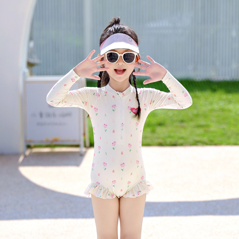 Huili 어린이 수영복 여성 온천 중소 어린이 전문 수영복 소녀 귀여운 아기의 긴팔 수영복
