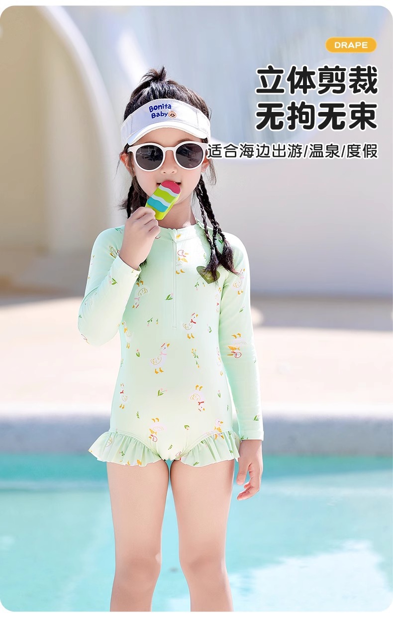 Huili 어린이 수영복 여성 온천 중소 어린이 전문 수영복 소녀 귀여운 아기의 긴팔 수영복스토어 가기