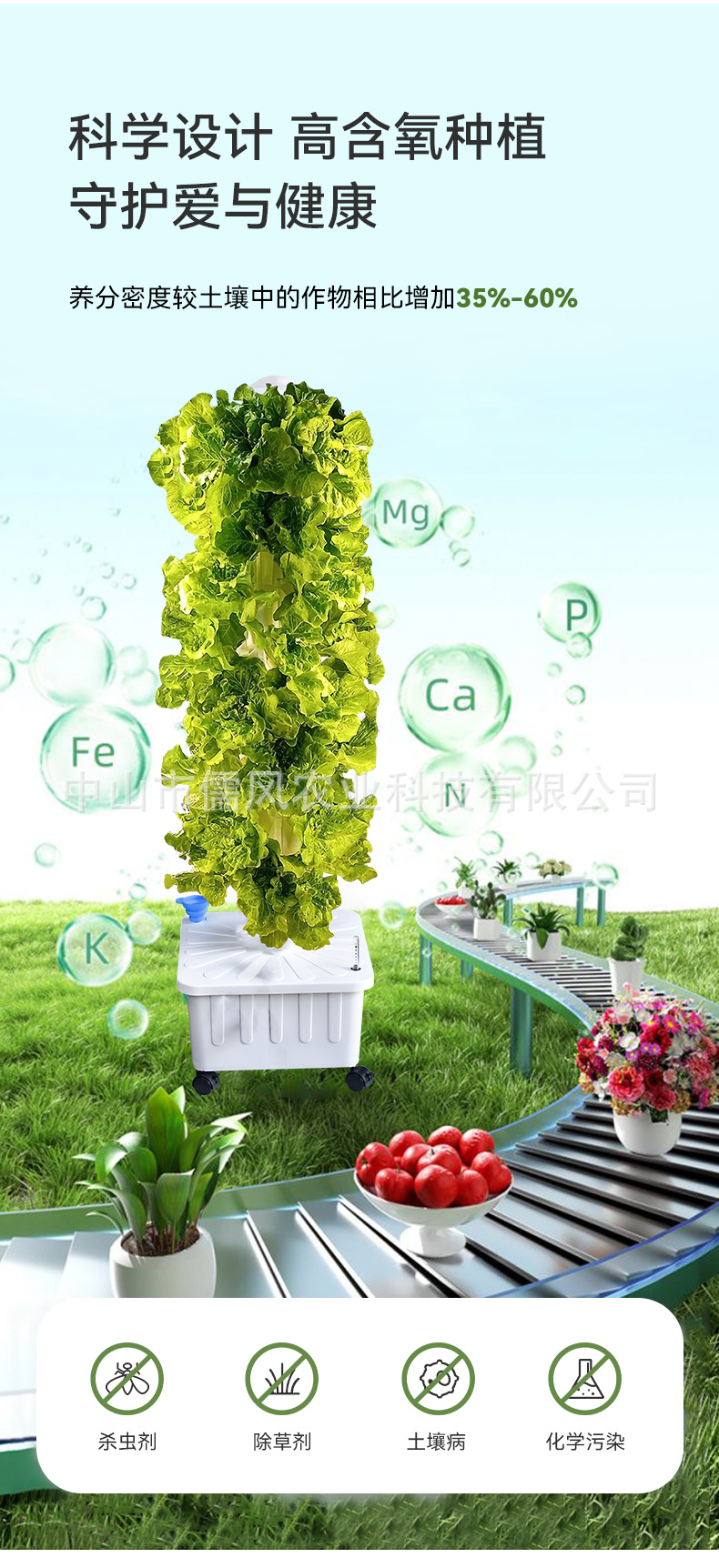 这款产品是在儒风杯的基础上发展、改进而成的一种组合式种植立柱单元件及组合式种植立柱,其中组合式种植立柱单元包括空心的筒体,筒体的侧壁至少设有一个种植通孔,筒体的外侧壁对应种植通孔的位置设有定植杯,定植杯的碗口朝上,筒体内侧壁对应种植通孔的位置设有接液槽体,接液槽体的槽口朝上,接液槽体的槽底通过种植通孔与定植碗的碗底连通;组合式种植立柱包括多个立柱单元,相邻的立柱单元通过环形插管来实现连接。使用时,接液槽体可以积累一定量的营养液,可以供那些根系短而无法伸入到筒体内的植物根系吸收,还可以保证植物在暂停营养液喷雾或喷淋期间还能得到适当的营养和水分补给,因此可以间断性喷雾或喷淋,节约电能。水培儒风柱是一款创新型的立体水培种植系统,巧妙融合现代农业科技与东方人文美学理念,专为现代城市农业及家庭园艺场景设计。其命名取意“儒雅之风”,即体现系统对传统农耕文化的传承,又彰显简约时尚的现代设计语言。