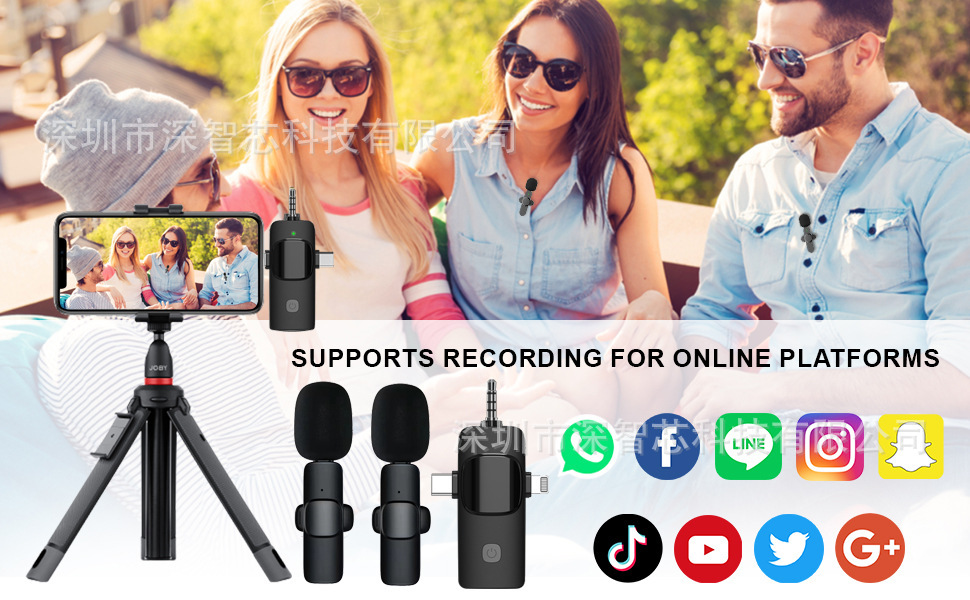 새로운 휴대용 무선 칼라 클립 마이크 K15 1 대 2 야외 휴대 전화 라이브 방송 장비 블루투스 라디오 마이크