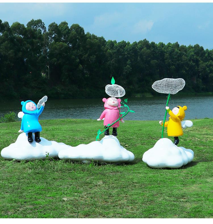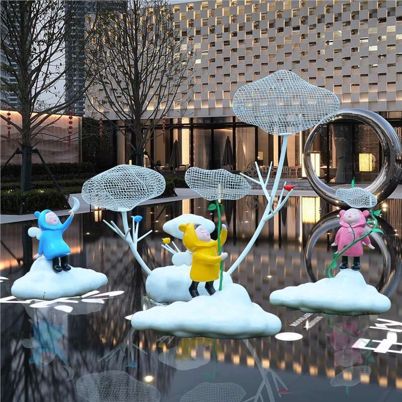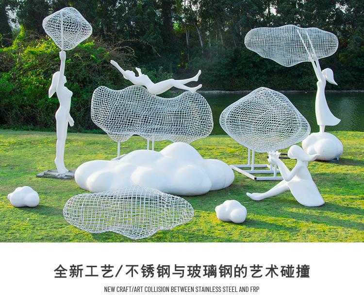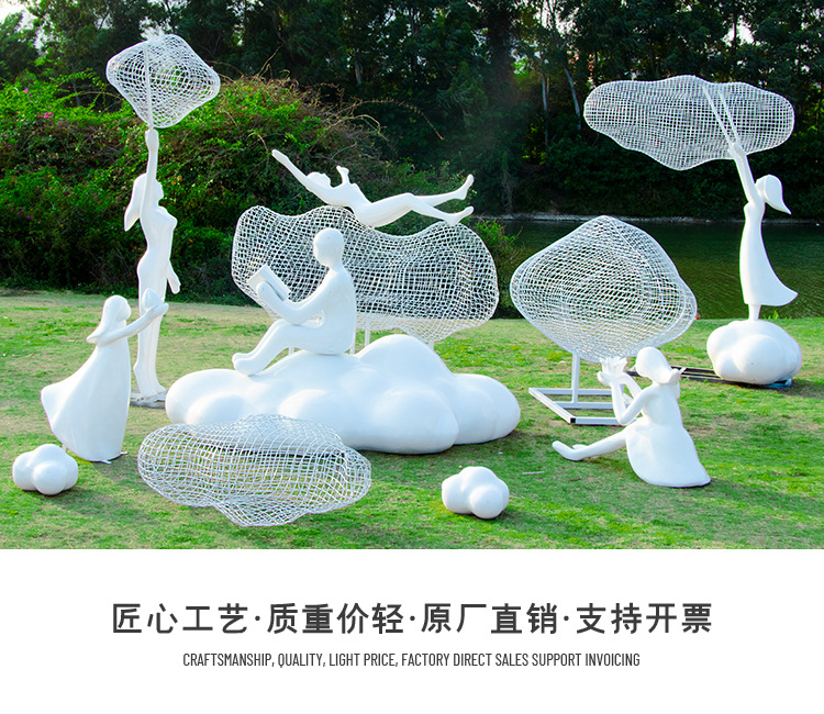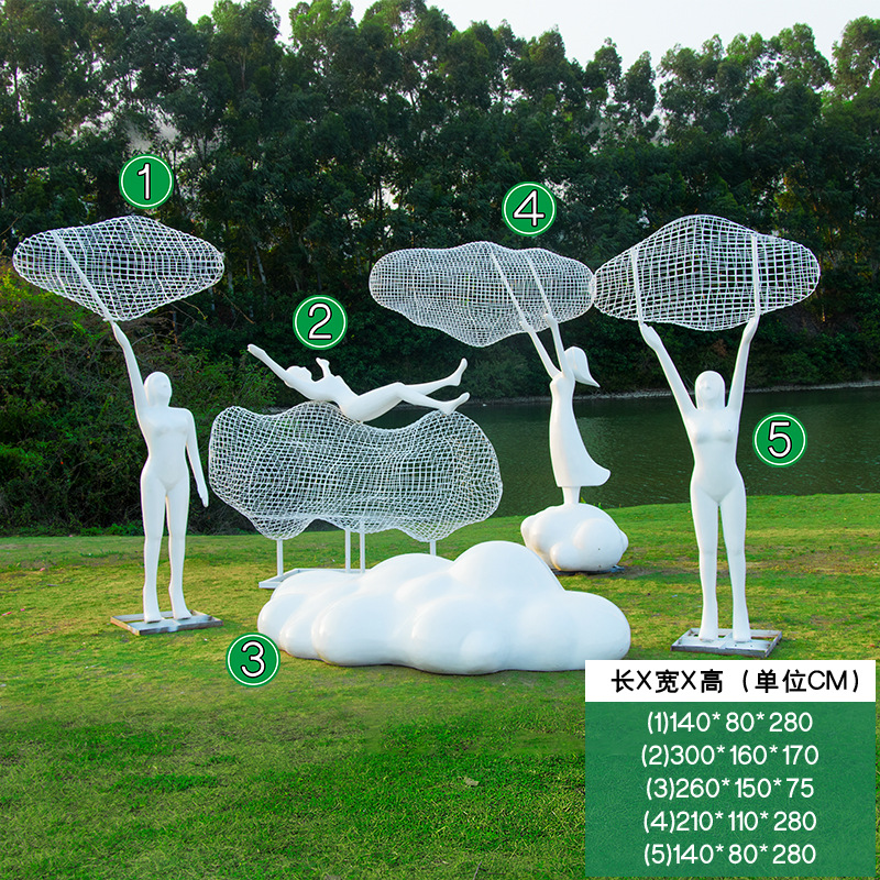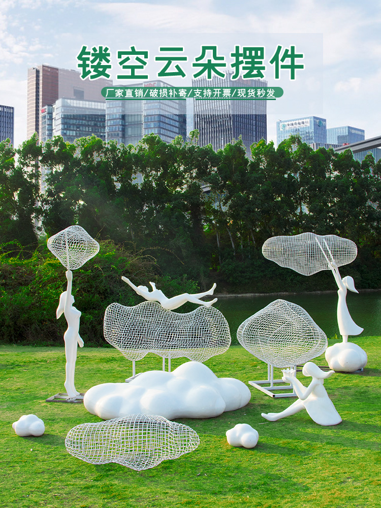 야외 스테인레스 스틸 중공 구름 조각 판매 사무실 공원 숲 잔디 유리 섬유 강화 플라스틱 캐릭터 장식 커뮤니티 장식