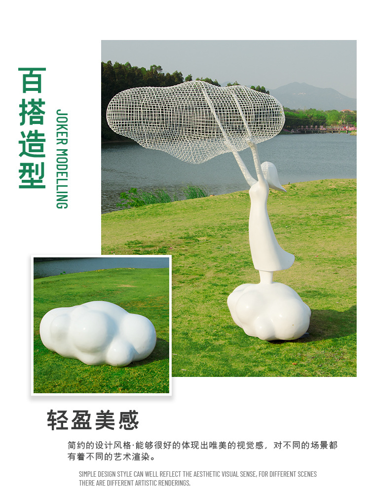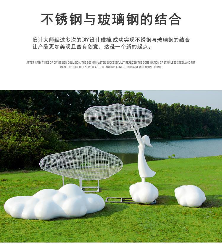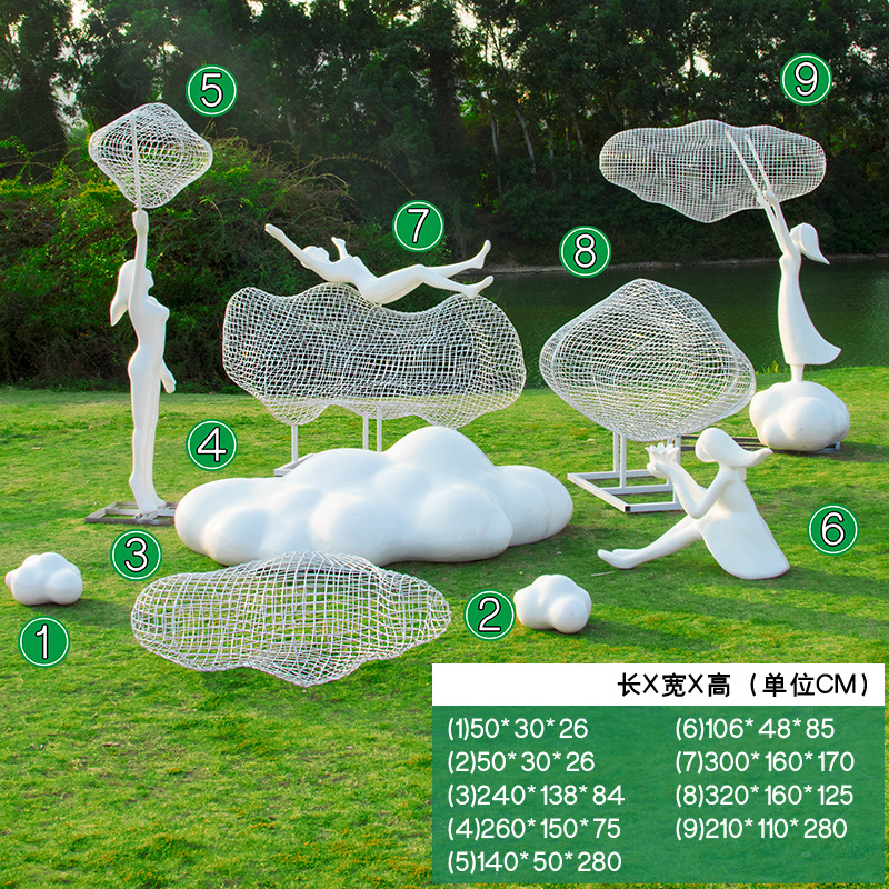야외 스테인레스 스틸 중공 구름 조각 판매 사무실 공원 숲 잔디 유리 섬유 강화 플라스틱 캐릭터 장식 커뮤니티 장식스토어 가기