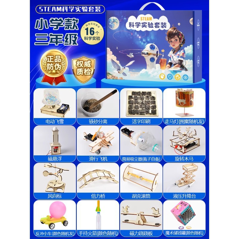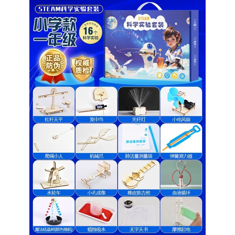 과학 기술 세트 작은 실험 발명 DIY 수제 재료 초등학교 학생들의 퍼즐 과학 및 교육 매뉴얼스토어 가기