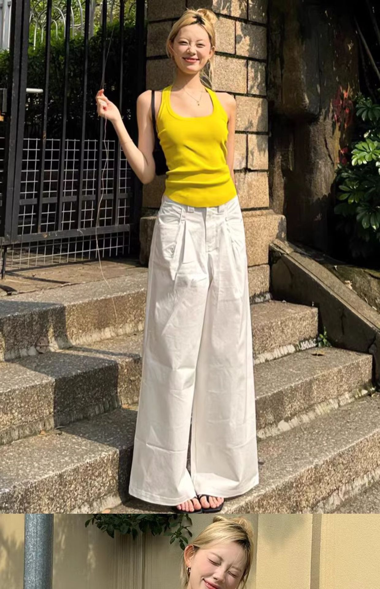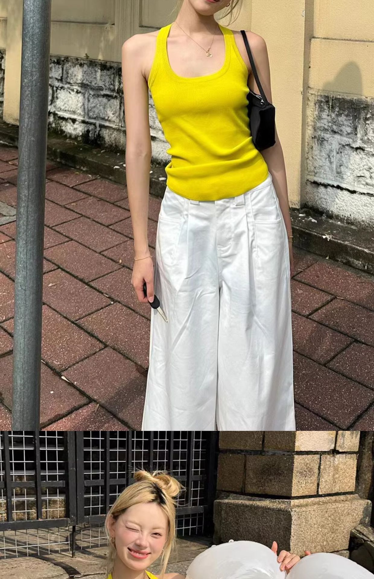 레몬 옐로우 니트 I 자형 조끼 여성 여름 아우터 착용 민소매 커버 파라 미리스 아름다운 작은 슬링 프랑스 스타일 홀터 탑스토어 가기