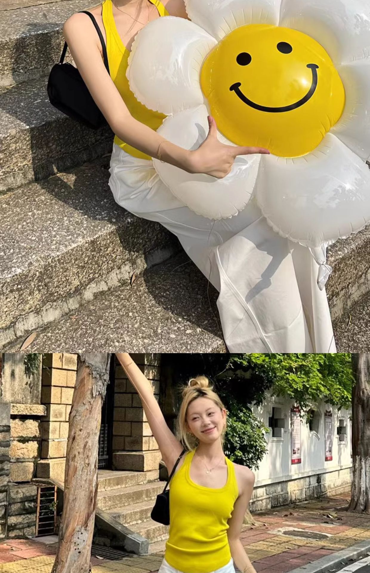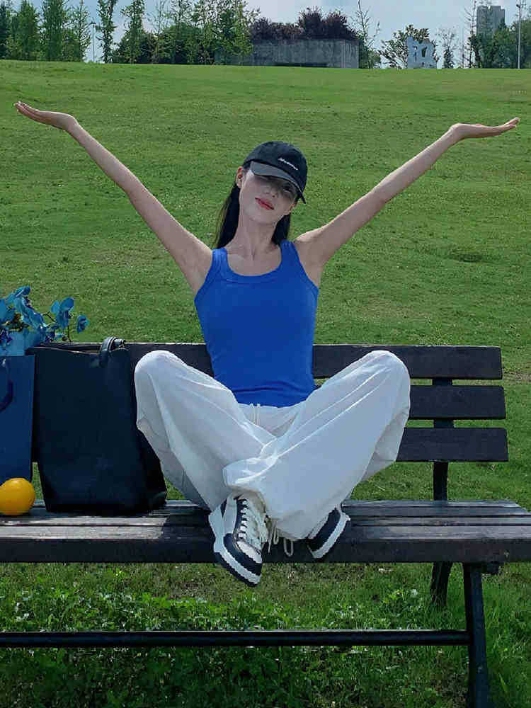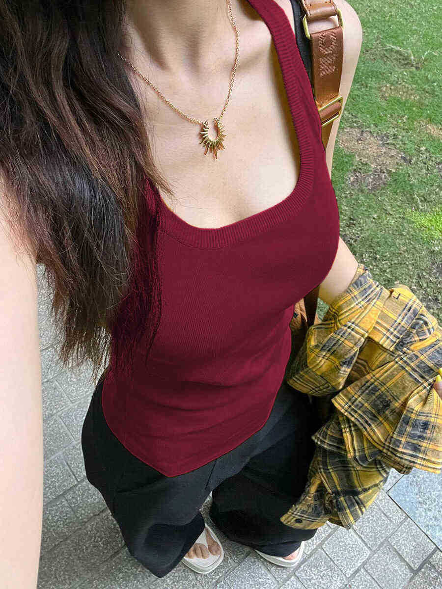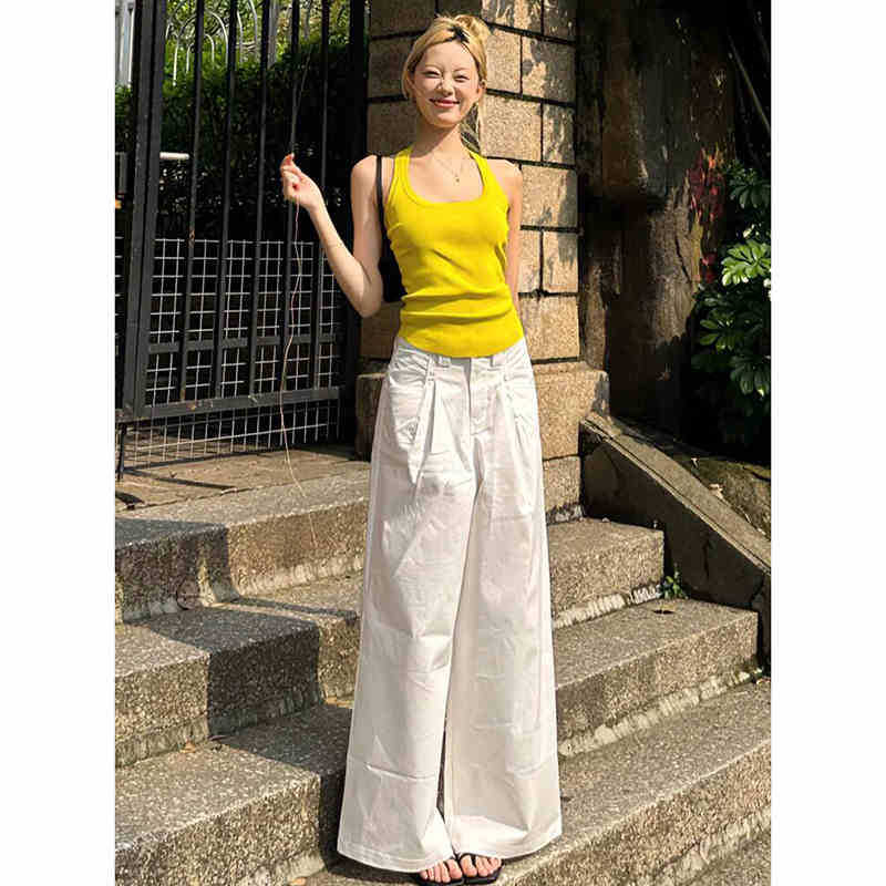 레몬 옐로우 니트 I 자형 조끼 여성 여름 아우터 착용 민소매 커버 파라 미리스 아름다운 작은 슬링 프랑스 스타일 홀터 탑