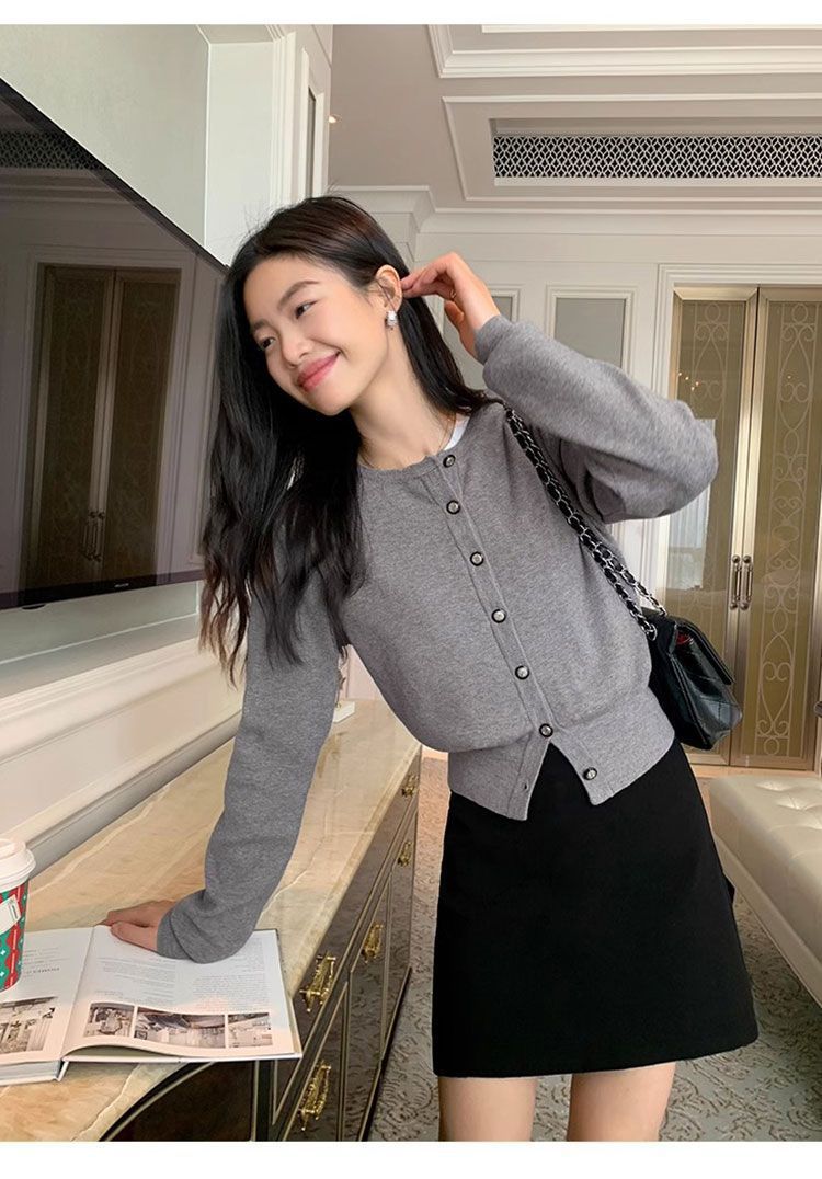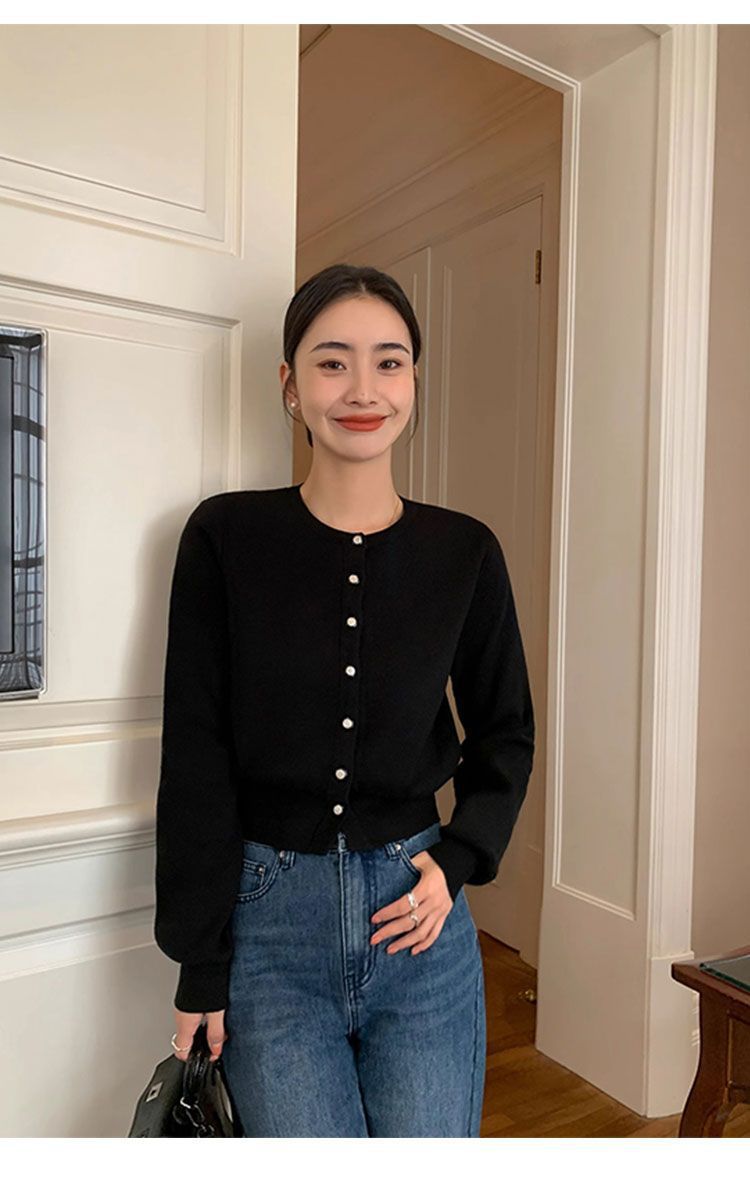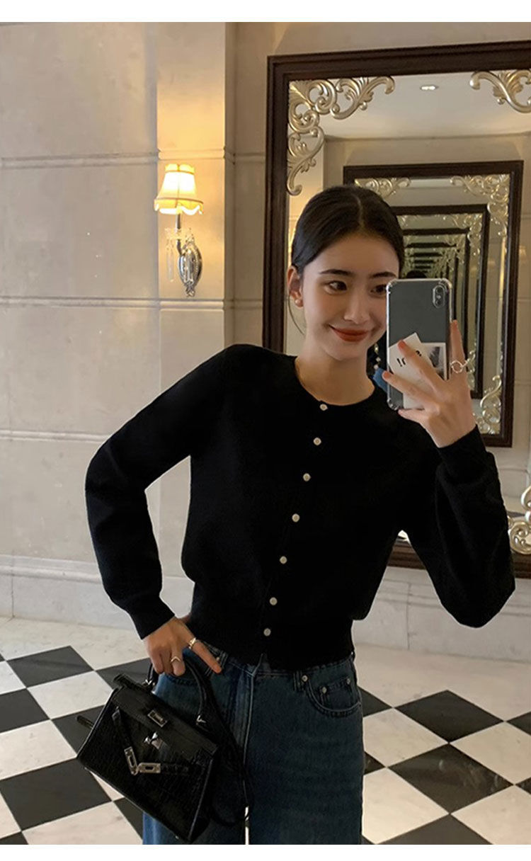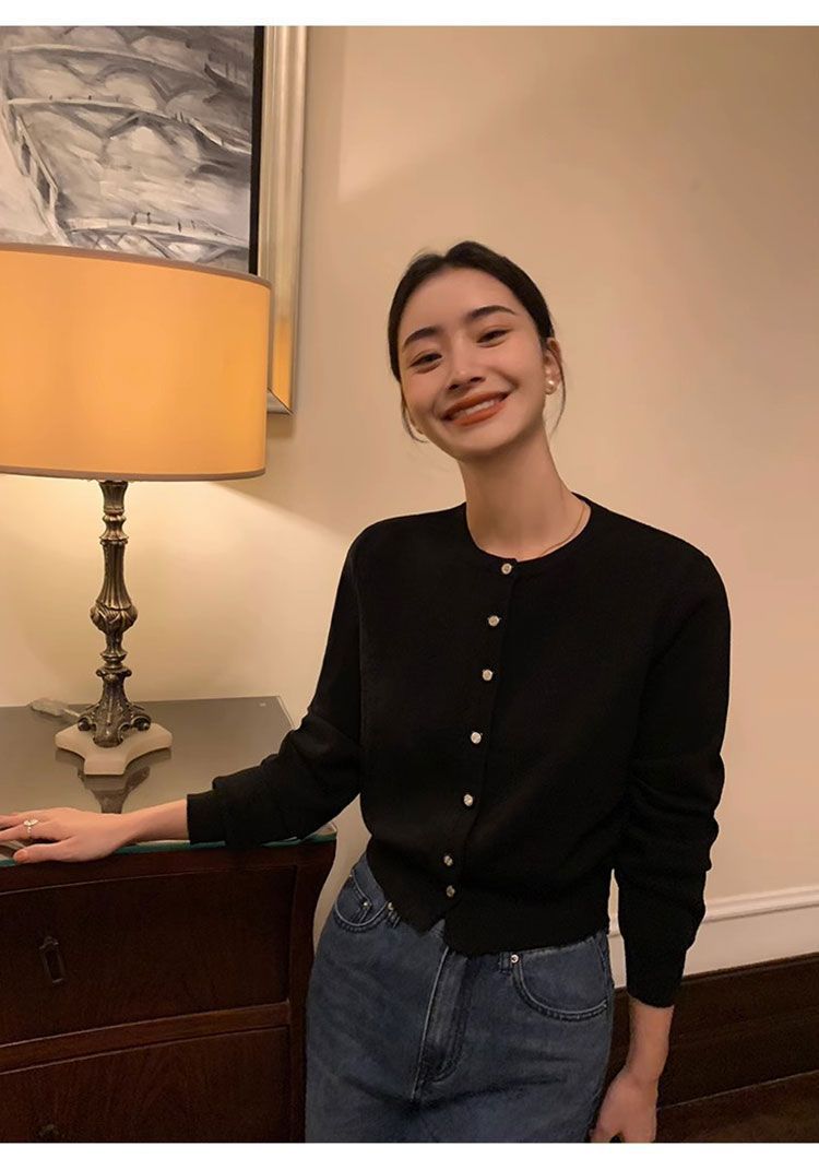 르 딩 ~ 서양식 레트로 간단한 올매치 크루 넥 니트 카디건 한국 캐주얼 루즈 아우터 쇼트 탑 트렌디
