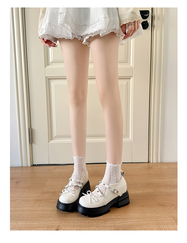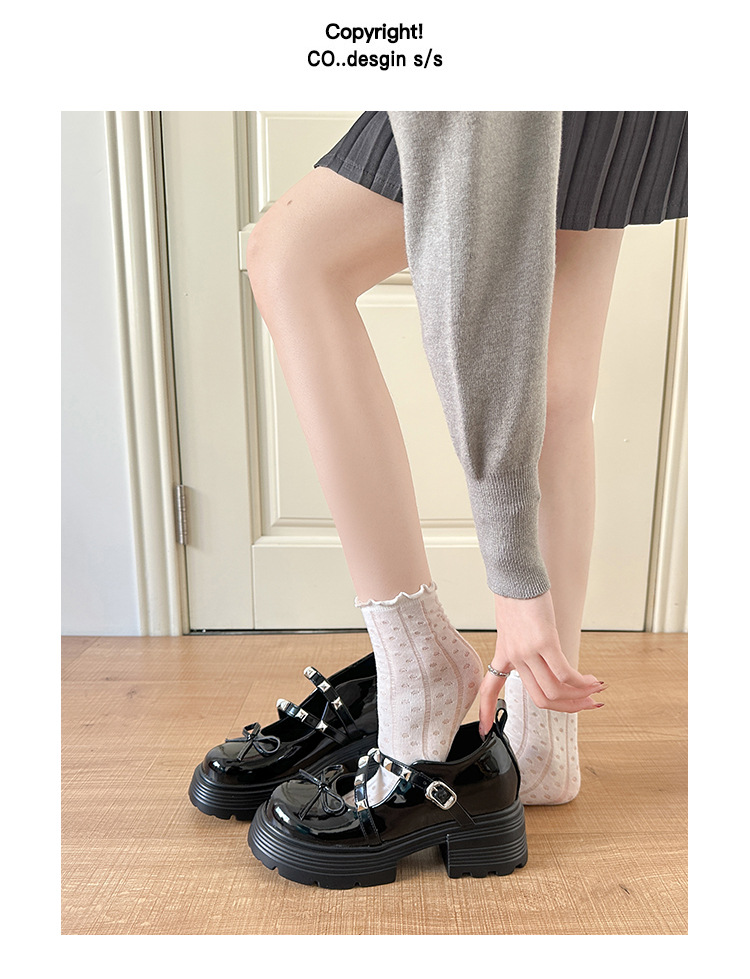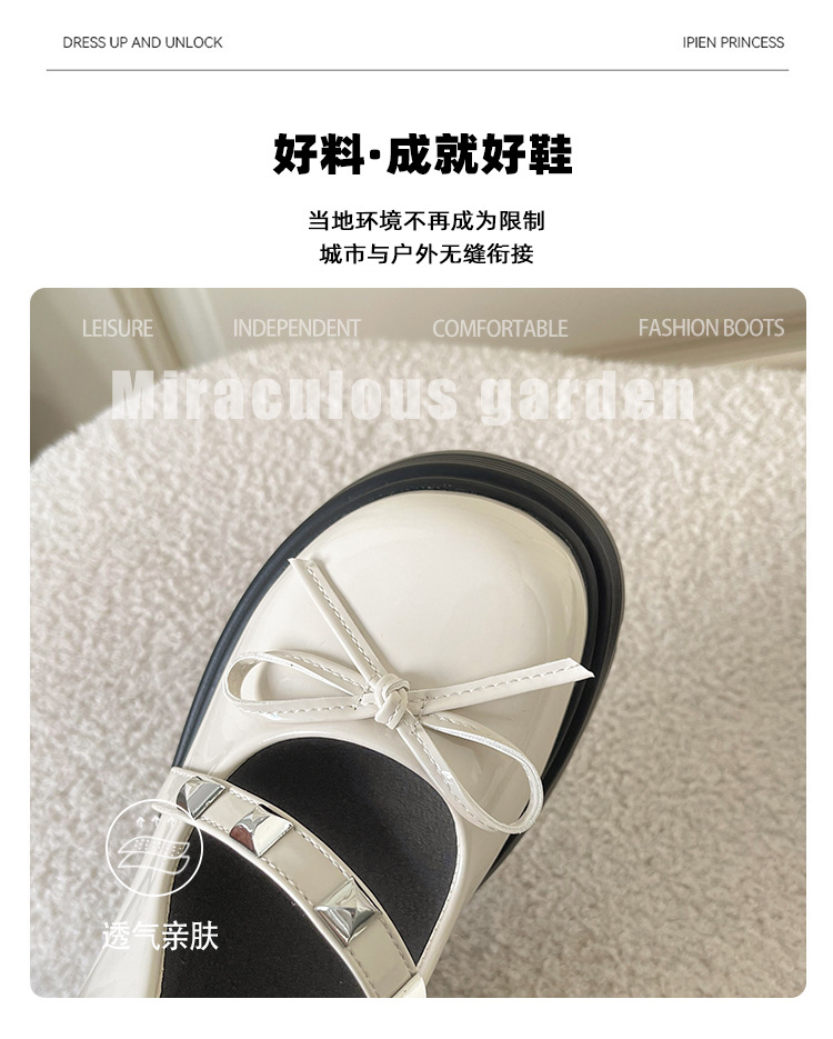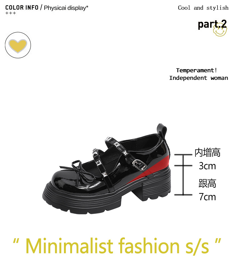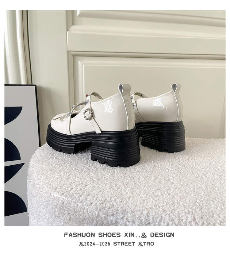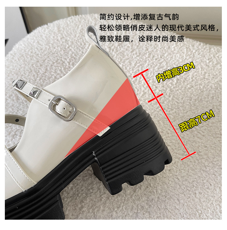 내부 높이 증가 작은 가죽 신발 여성의 2025 년 봄과 가을 새로운 크로스 스트랩 리벳 퍼핀 싱글 신발 두꺼운 단독 메리 제인 신발스토어 가기