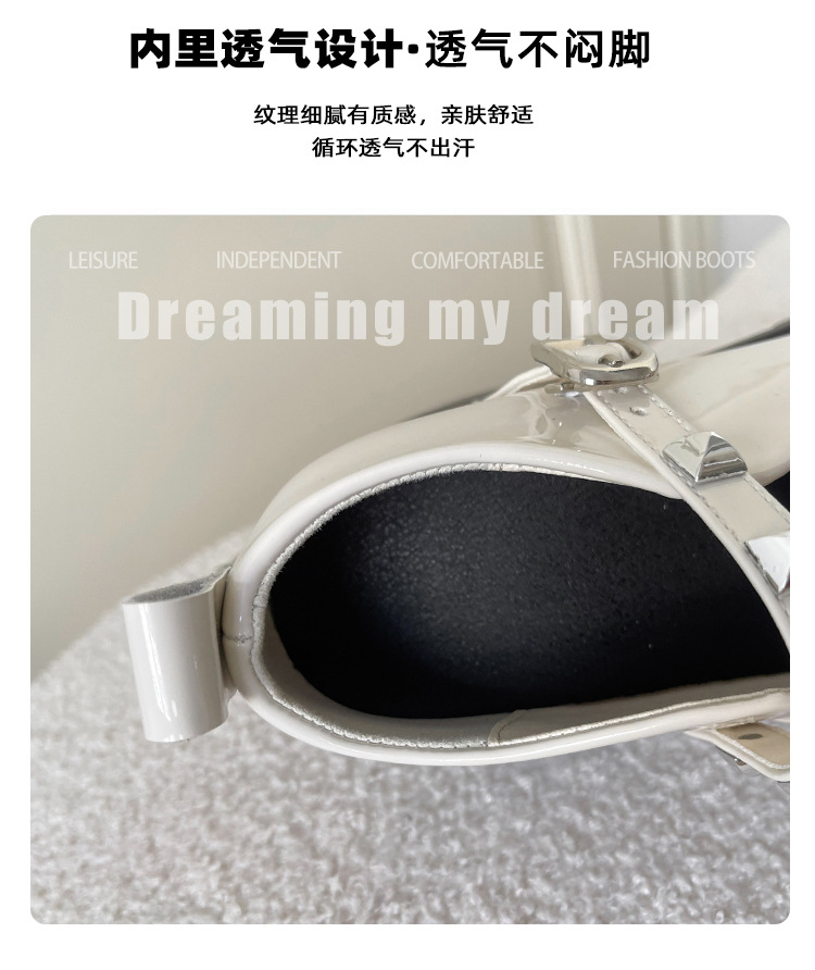 내부 높이 증가 작은 가죽 신발 여성의 2025 년 봄과 가을 새로운 크로스 스트랩 리벳 퍼핀 싱글 신발 두꺼운 단독 메리 제인 신발