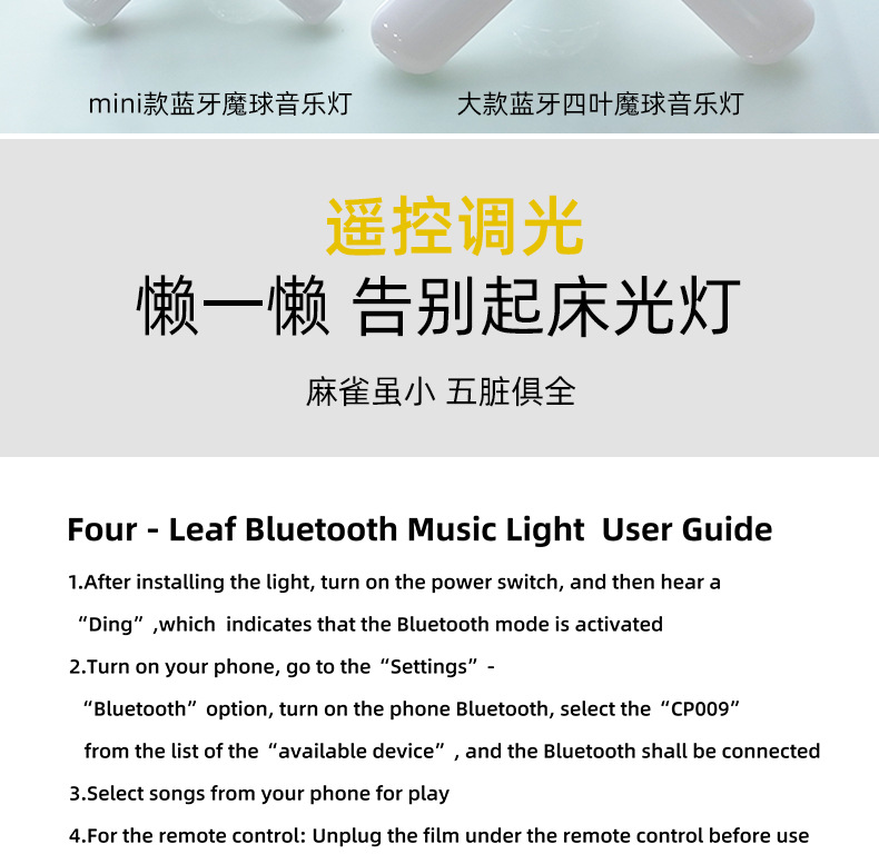 대외 무역 국경 미니 블루투스 매직 볼 음악 빛 무선 블루투스 RGB 다채로운 미니 4 잎 무대 빛