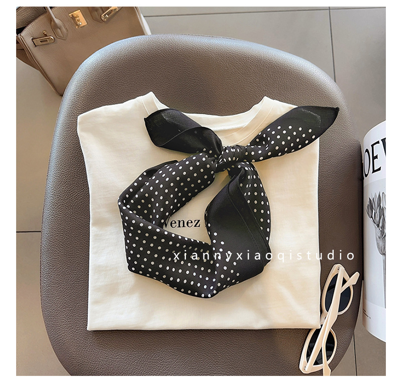 실크 스카프 여자 2025 봄과 여름 새로운 하이 엔드 센스 한국식 웨이브 도트 실크 스카프 올매치 넥 보호 얇은 스카프
