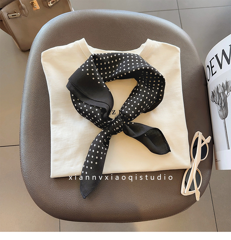 실크 스카프 여자 2025 봄과 여름 새로운 하이 엔드 센스 한국식 웨이브 도트 실크 스카프 올매치 넥 보호 얇은 스카프스토어 가기