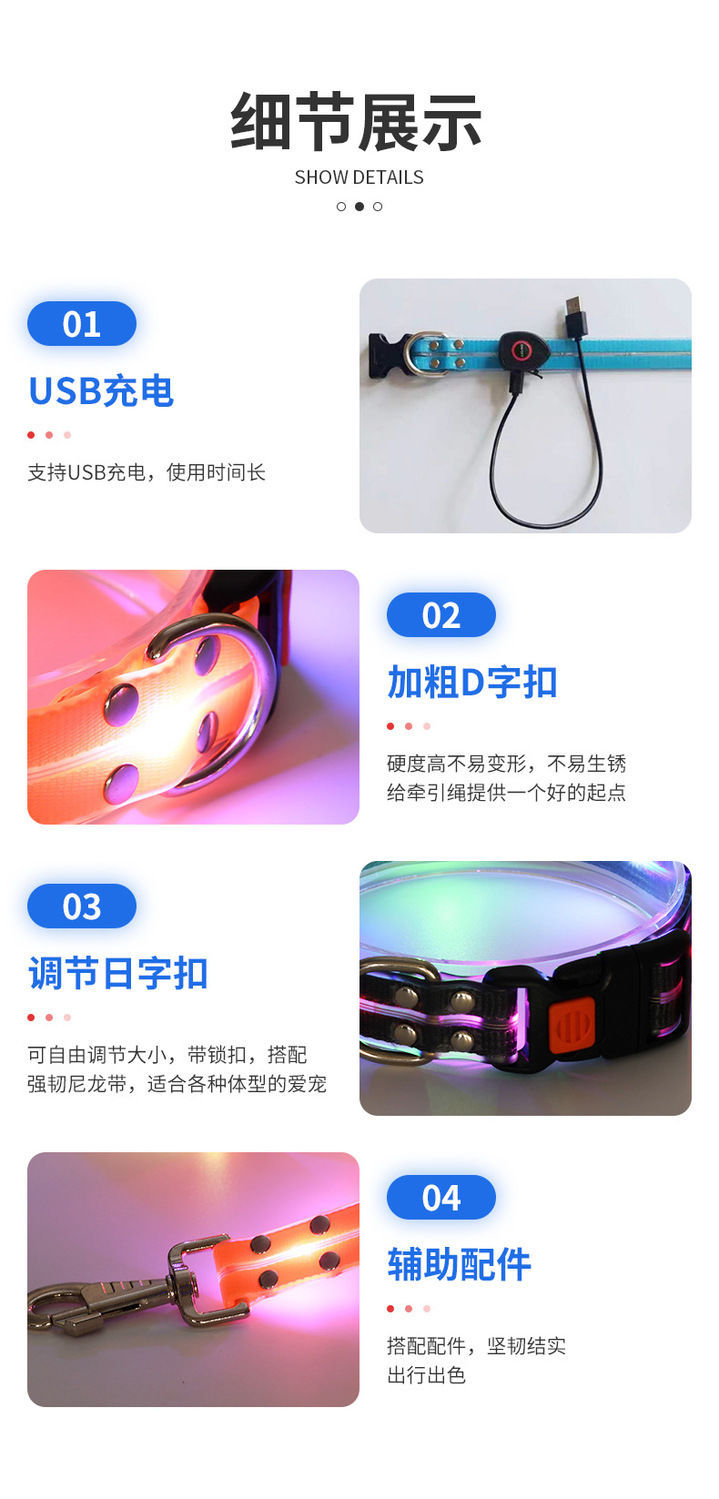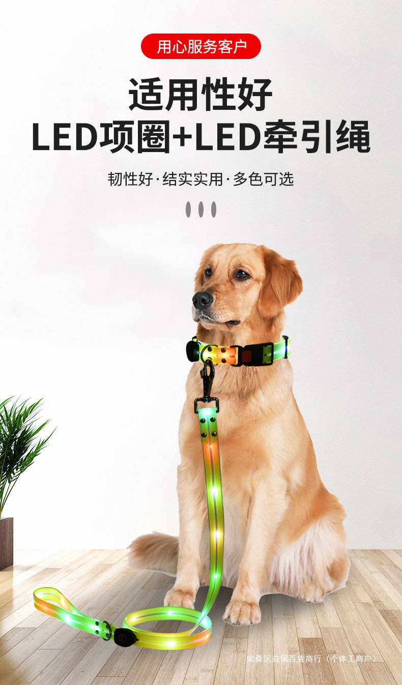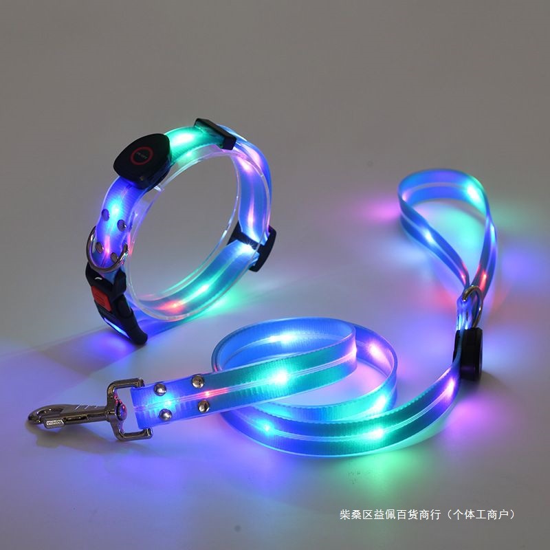 [3036 컬렉션] 칼라 견인 밧줄 밤 개 걷는 인공물 패션 애완 동물 조절 가능한 LED 발광