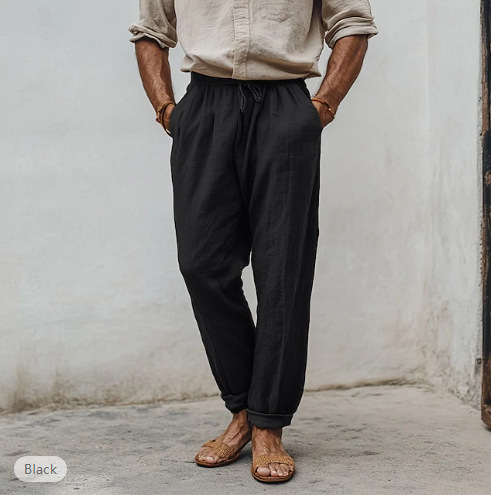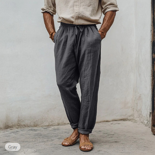대외 무역 남성 바지 여름 바지 비치 바지 drawstring 탄성 허리 스트레이트 단색 편안한 매일 패션 거리