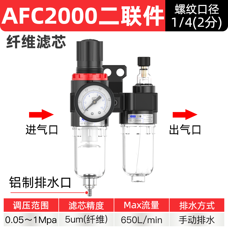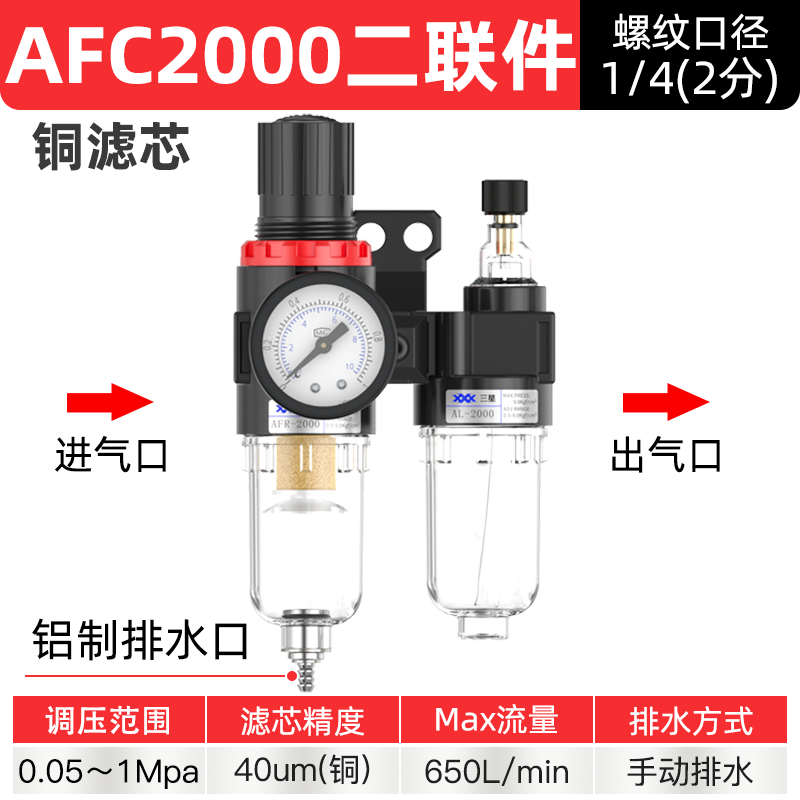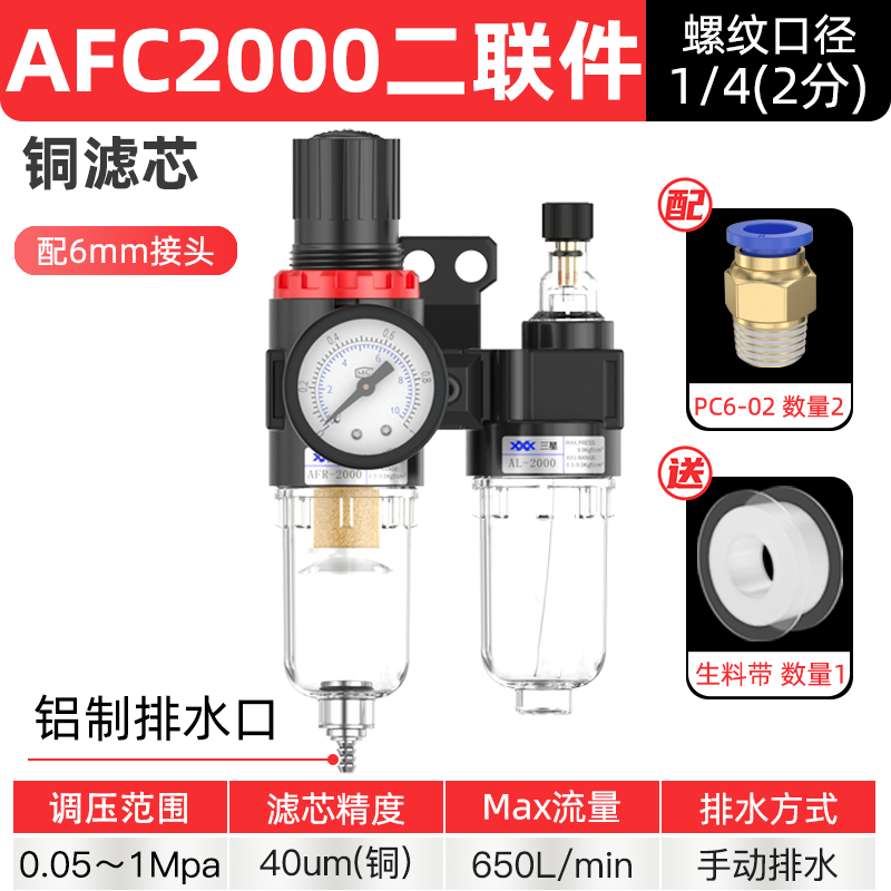 공기 압축기 공기 소스 프로세서 AFC2000 오일-물 분리기 공압 트리플 AR 압력 조절 밸브 AFR 필터스토어 가기