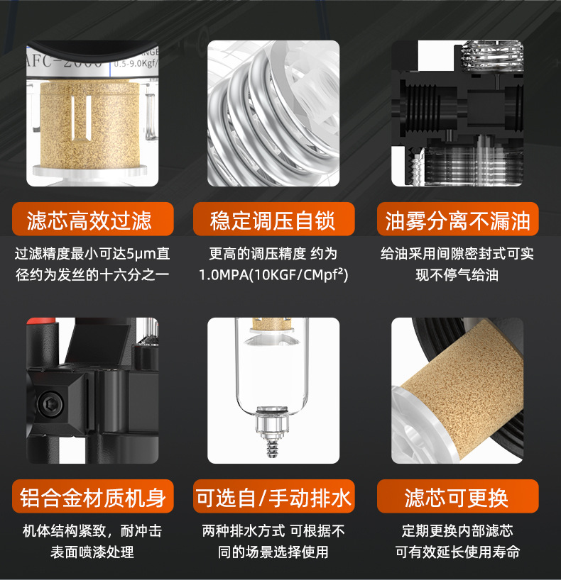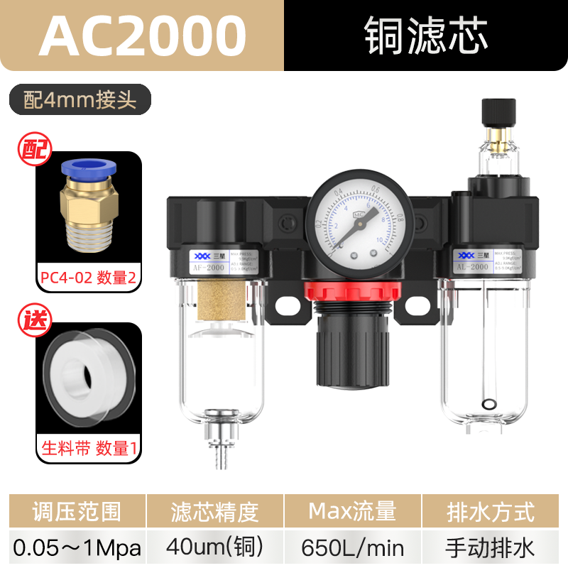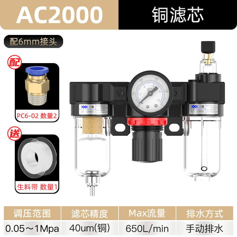 공기 압축기 공기 소스 프로세서 AFC2000 오일-물 분리기 공압 트리플 AR 압력 조절 밸브 AFR 필터