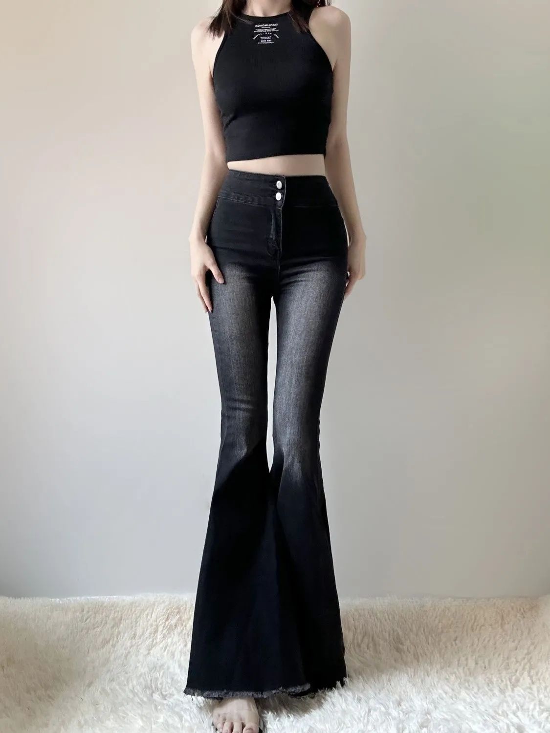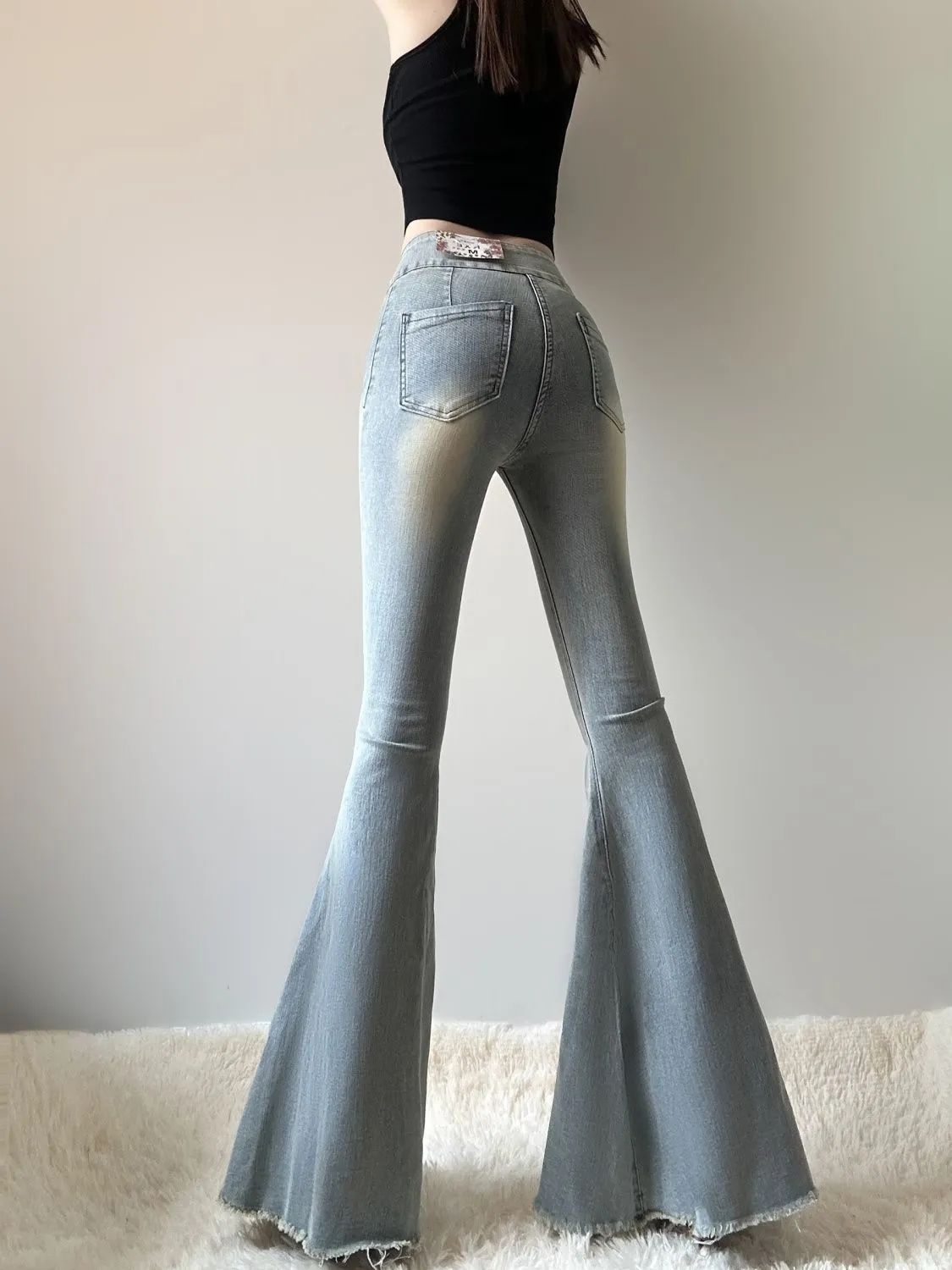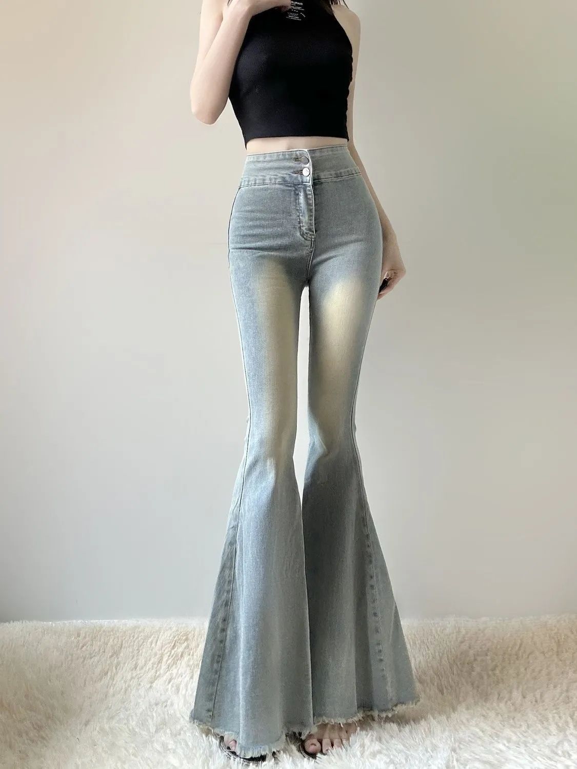 봄과 가을 하이 스트리트 하이 웨이스트 슬림 핏 슬림 호른 피쉬 테일 청바지 레트로 스트레치 아우터 트렌디 트렌디 한 랍바지스토어 가기