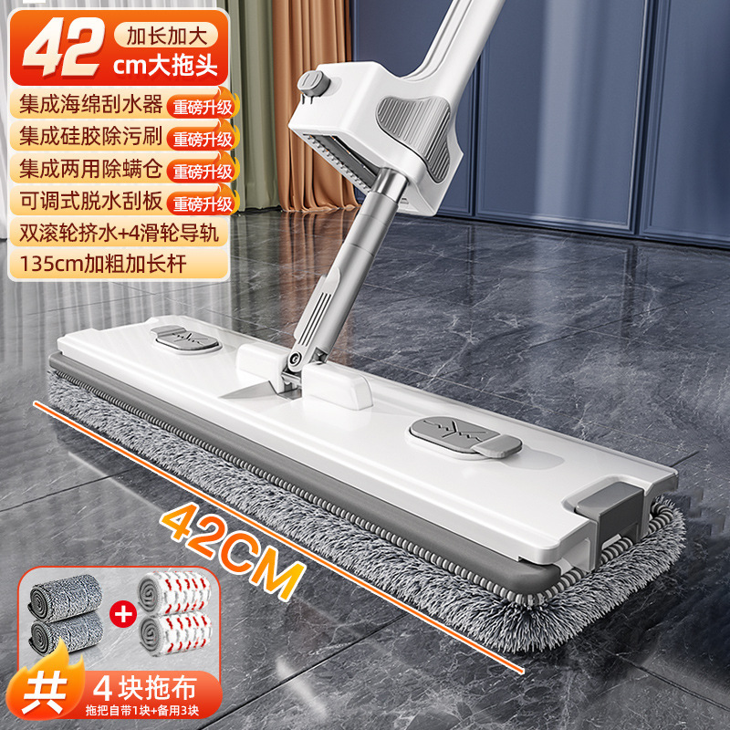 • 콰이어트 그레이 [42CM 이중층 두꺼운 걸레 헤드 + 두꺼운 천 4개] 다기능 걸레 및 긁기 + 두꺼운 강화 막대✦