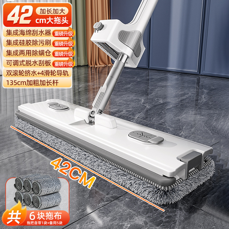 • 콰이어트 그레이 [42CM 이중층 두꺼운 걸레 헤드 + 두꺼운 천 6개] 다기능 걸레 및 긁기 + 두꺼운 강화 막대✦